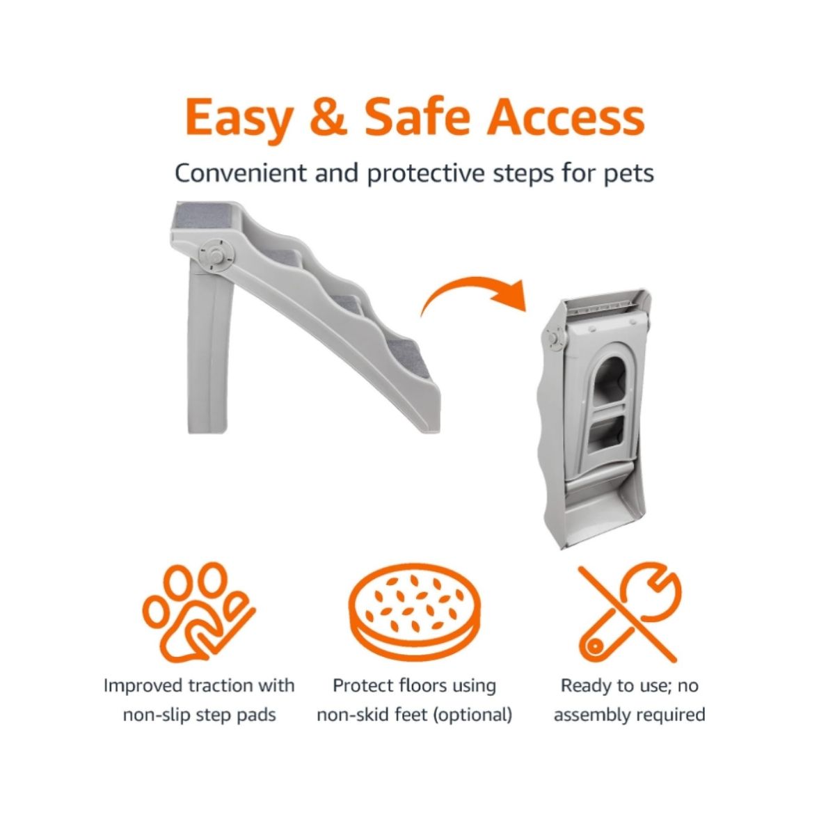 Foldable pet stairs by Amazon Basics provide easy access for small or elderly pets. Featuring non-slip steps, they ensure safety and comfort indoors or in vehicles.