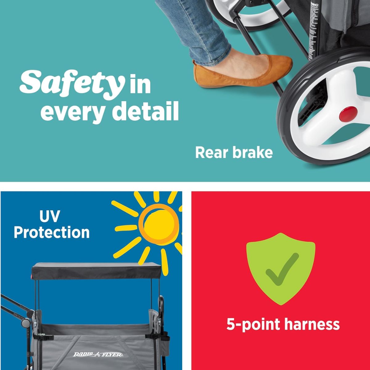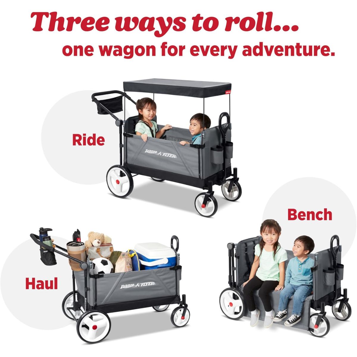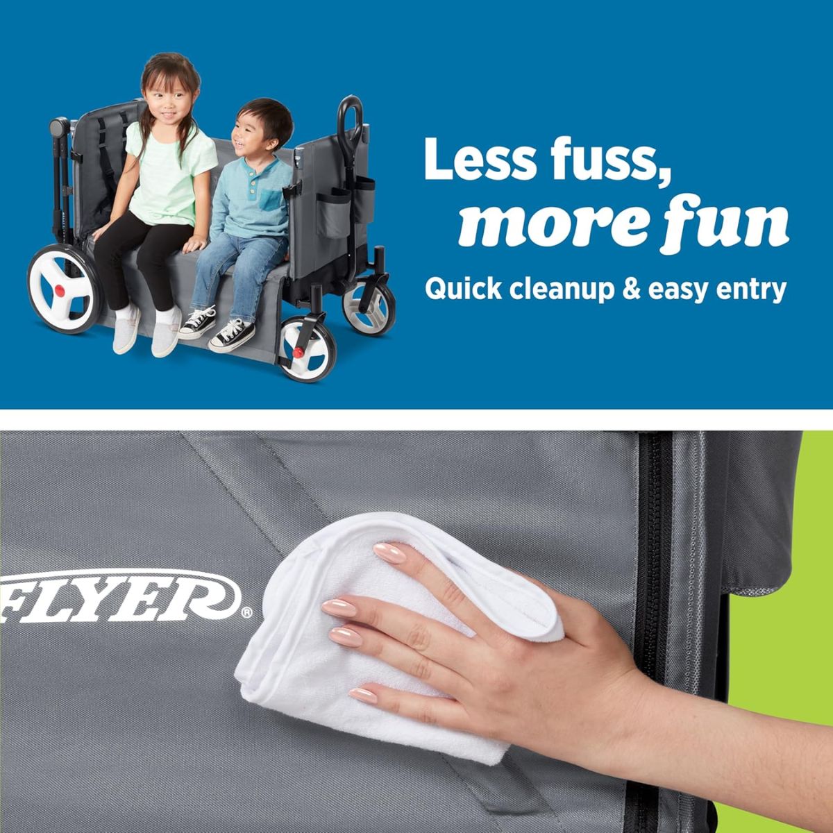 The folding push wagon offers convenience with internal storage pockets and a parent caddy. Perfect for easy transport and strolls.