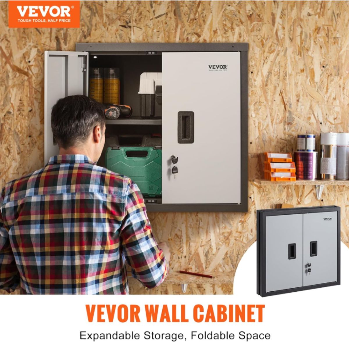 The folding wall cabinet from Vevor offers strong, foldable metal storage with adjustable shelves. Perfect for garage, office, or home organization.