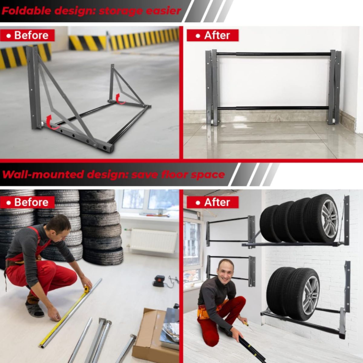 Folding Wall Mount Tire Rack – HOXWELL Durable Storage