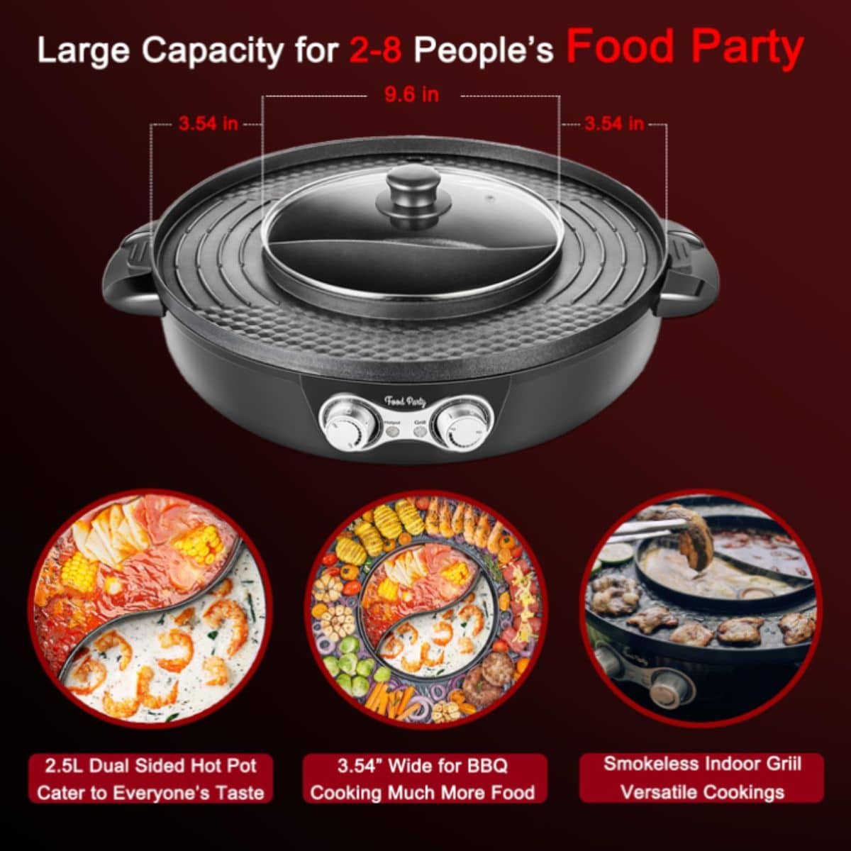 Food Party DUO Electric Smokeless Grill and Hot Pot