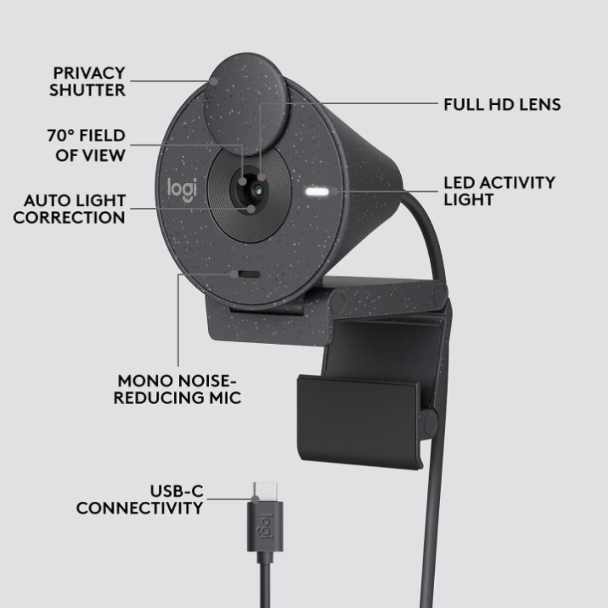 The full hd webcam by Logitech delivers 1080p resolution and features a privacy shutter. Perfect for clear, professional video meetings.