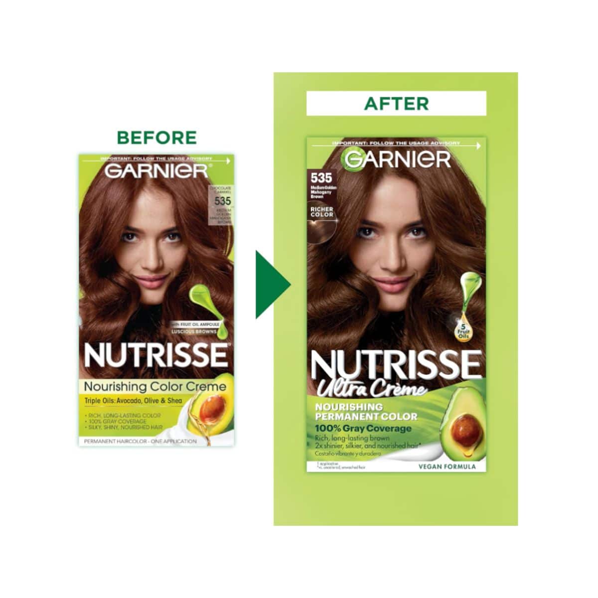 Garnier Nutrisse Nourishing Hair Color Creme, 535 Medium Gold Mahogany Brown (Packaging May Vary)