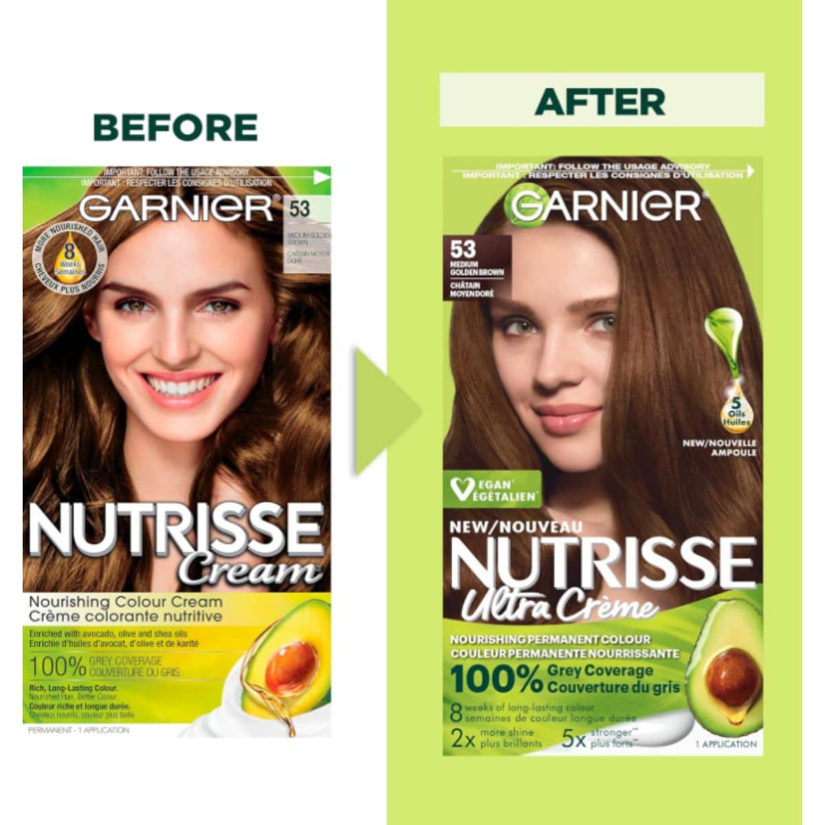 Discover exceptional quality with Garnier Nutrisse Ultra Crème, Permanent Hair Dye, 100% Grey Coverage, Vegan Formula, Nourished Hair, Long-Lasting Rich Colour, 53 Medium Golden Brown, 1 Application, Packaging May Vary. Garnier designed this lightweight product to delivers professional results at home. rated 4.8+ stars by verified buyers for its outstanding performance and value.
