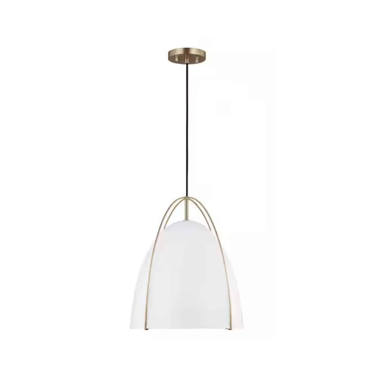 Enhance your space with the Generation Lighting Norman Pendant Light. Its satin brass finish and white dome shade blend elegance and functionality beautifully.