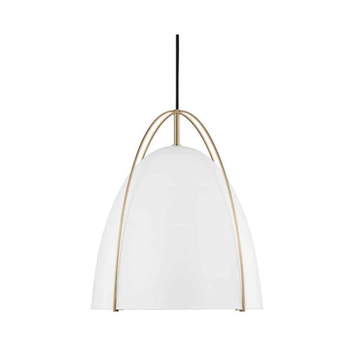 Generation Lighting Norman 1-Light Satin Brass Large Hanging Pendant Light with Matte White Steel Shade