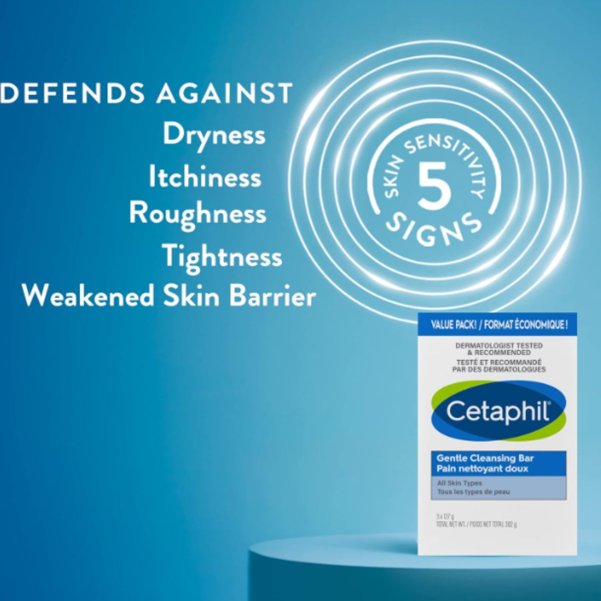 The gentle cleansing bar by Cetaphil is perfect for sensitive skin. This soap-free, hydrating bar cleanses face and body without irritation.