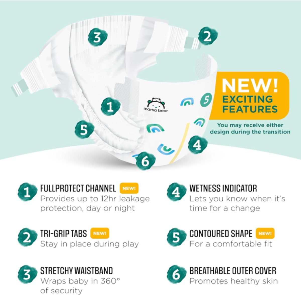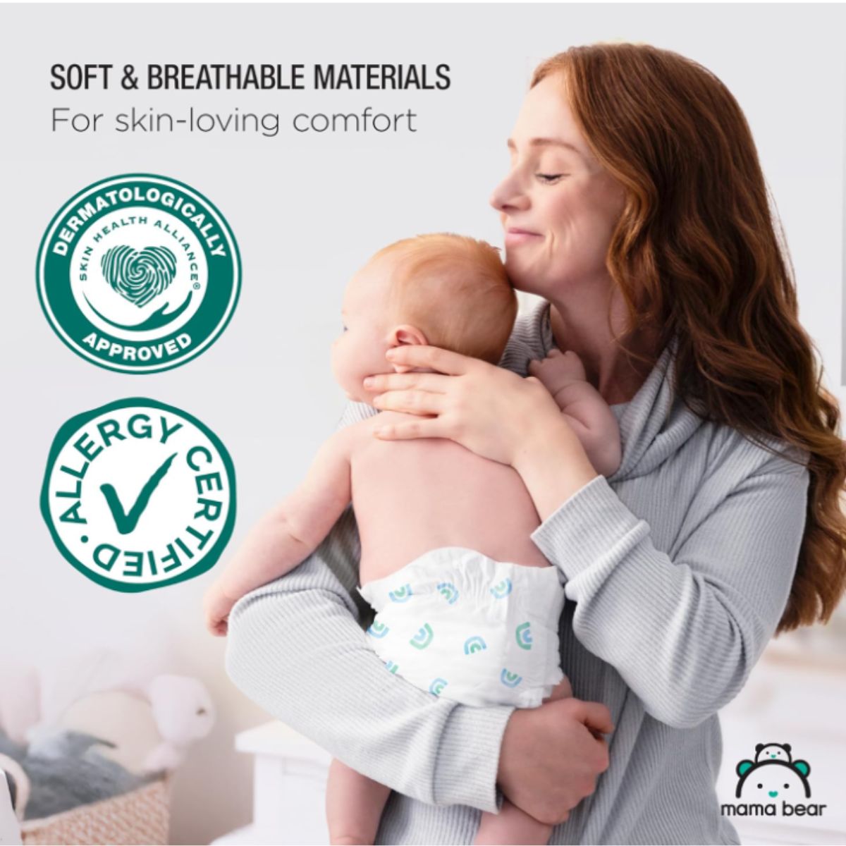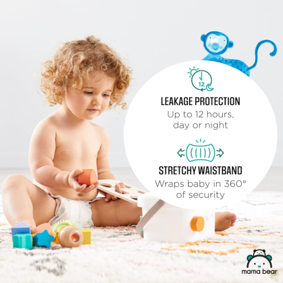 Gentle touch diapers by Mama Bear provide up to 12 hours of leak protection and are dermatologist tested for sensitive skin. Perfect for babies over 27 pounds.