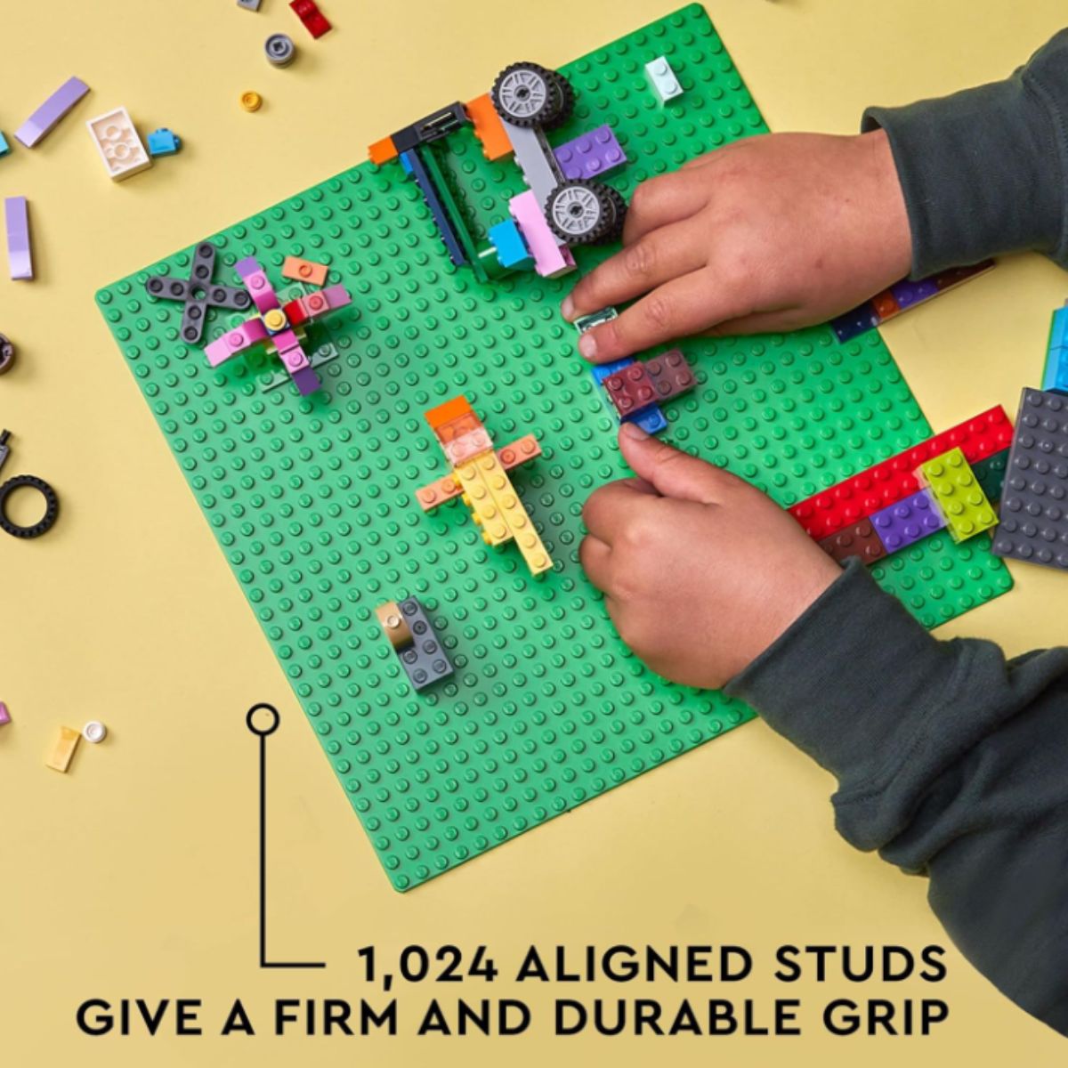 The green baseplate by Lego offers a sturdy and spacious foundation for creative LEGO projects. It’s perfect for kids and builders alike.