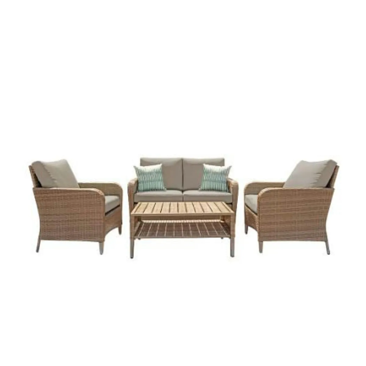 Hampton Bay Dearstone 4-Piece All-Weather Wicker Patio Conversation Set with Cushion Guard Beige Cushions