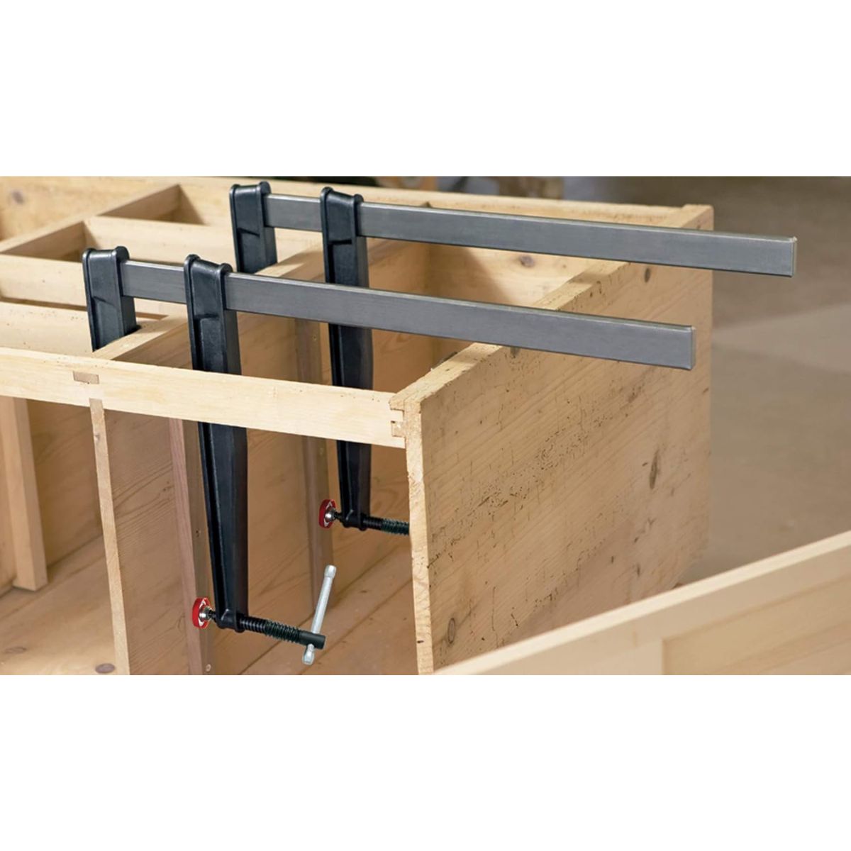 Heavy duty bar clamp offers strong, reliable clamping power. Ideal for woodworking and tradesmen projects requiring precision and durability.