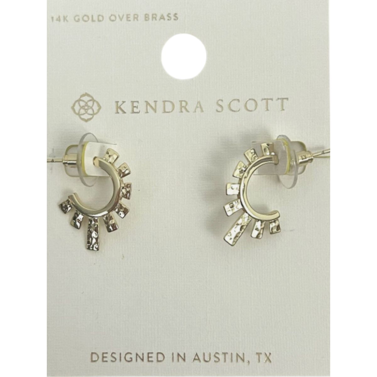 Huggie earrings by Kendra offer a stylish gold metal sunburst design. Perfect for casual or formal wear, these earrings add sophistication effortlessly.
