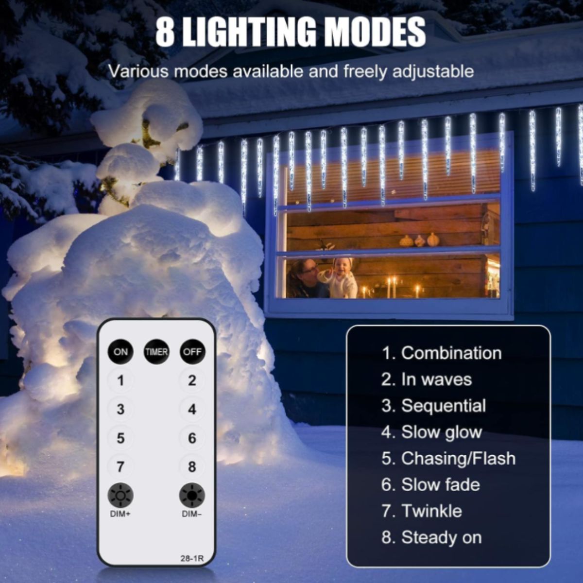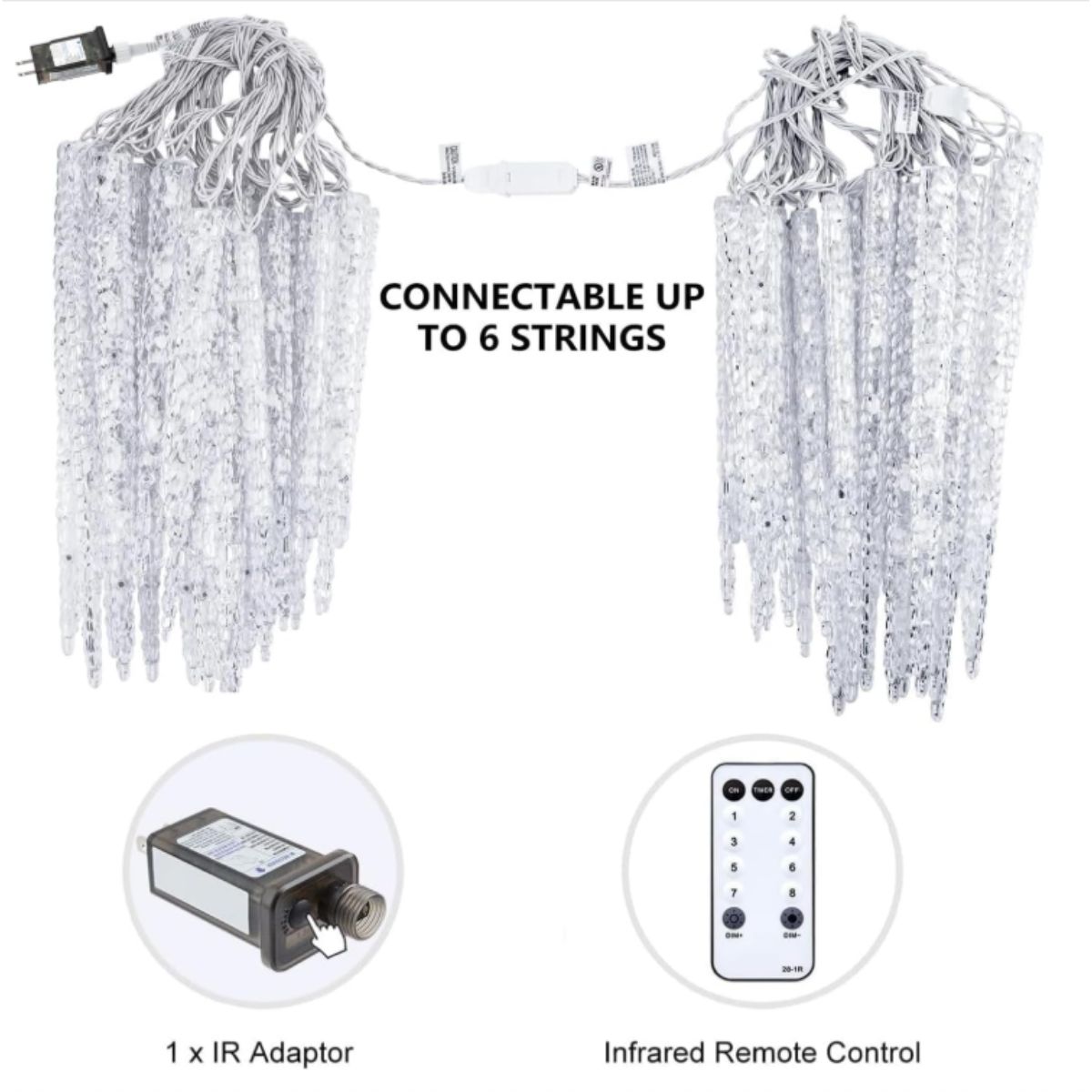 These icicle lights outdoor by Brightown add a magical touch to your holiday décor. Waterproof and remote-controlled, they are perfect for patios, roofs, and trees.