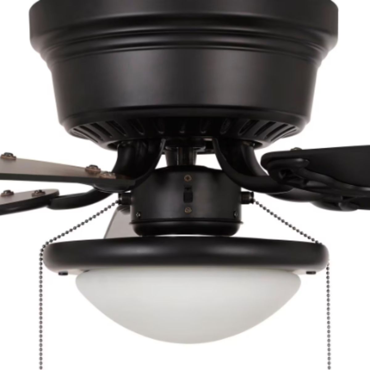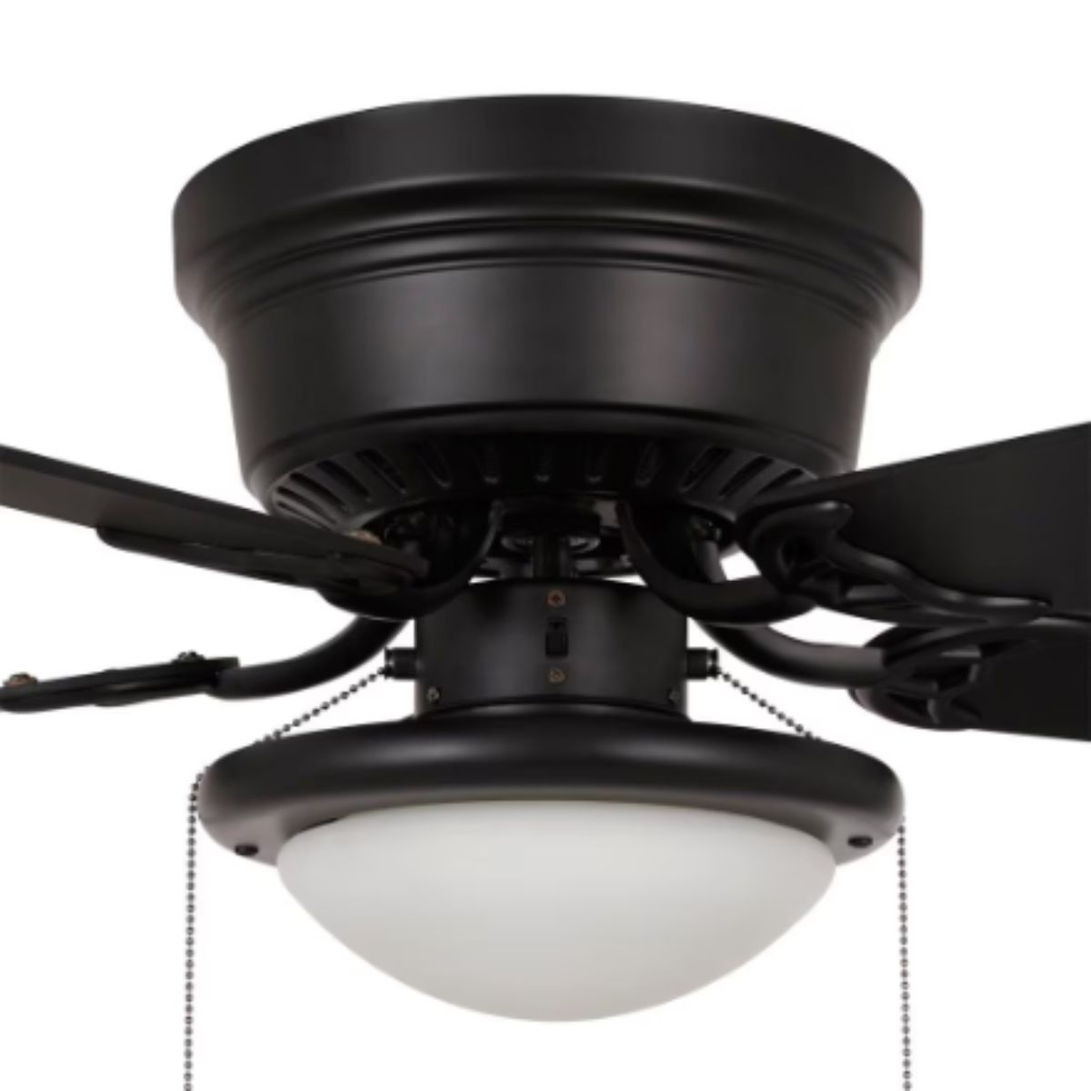 This indoor ceiling fan by Hdg features a 52-inch blade span and matte black finish. Ideal for low ceilings with a built-in LED light kit.