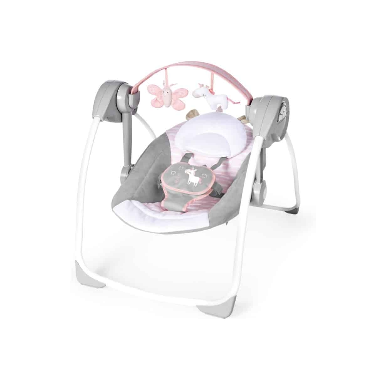 Ingenuity Comfort 2 Go Compact Portable 6-Speed Baby Swing with Music, Folds for Easy Travel-Flora the Unicorn (Pink), 0-9 Months