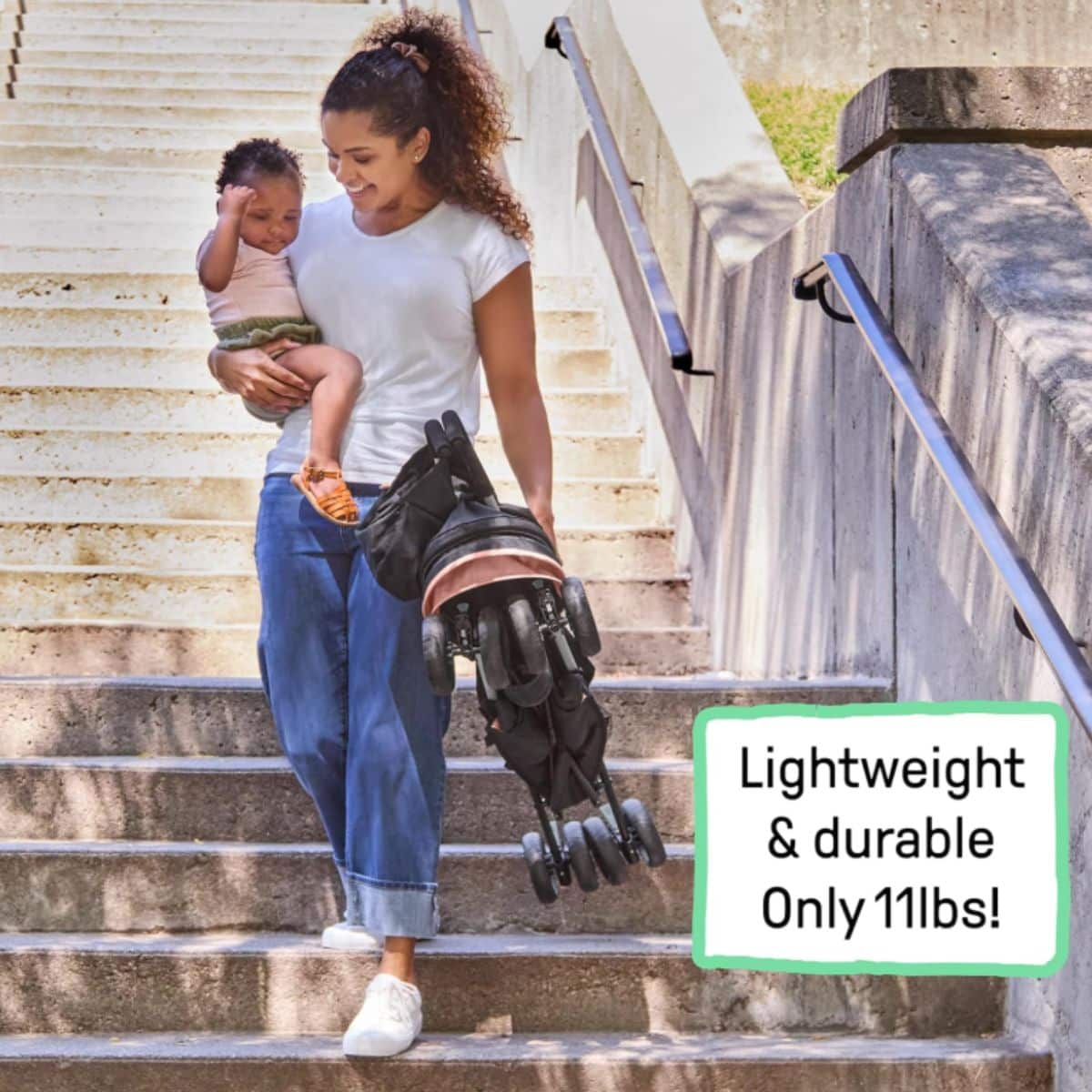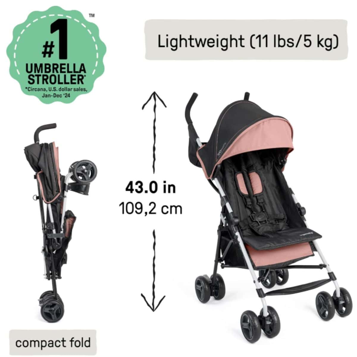 Ingenuity3D Mini Convenience Stroller ? Lightweight Stroller, Compact Fold, Multi-Position Recline, Canopy with Pop Out Sun Visor and More ? Umbrella Stroller for Travel, Dusty Rose Pink
