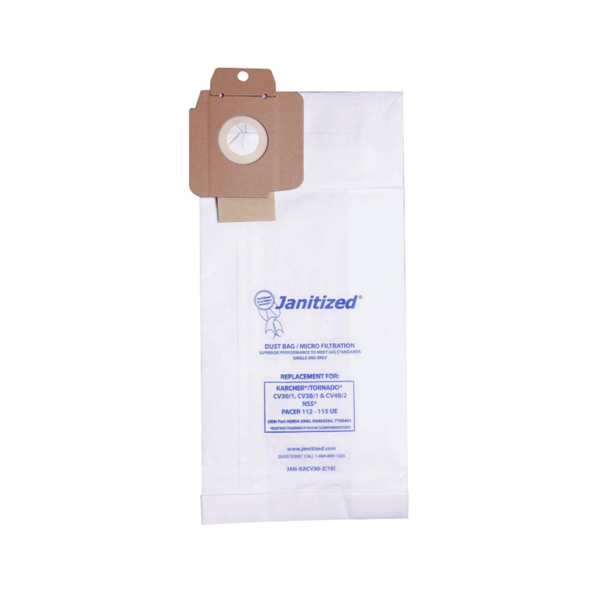 Janitized JAN-KACV30-2(10) Paper Premium Replacement Commercial Vacuum Bag for Karcher/Tornado CV30/1 and CV38/1 & NSS Pacer 112 & 115 UE vacuums (10-10 Packs)