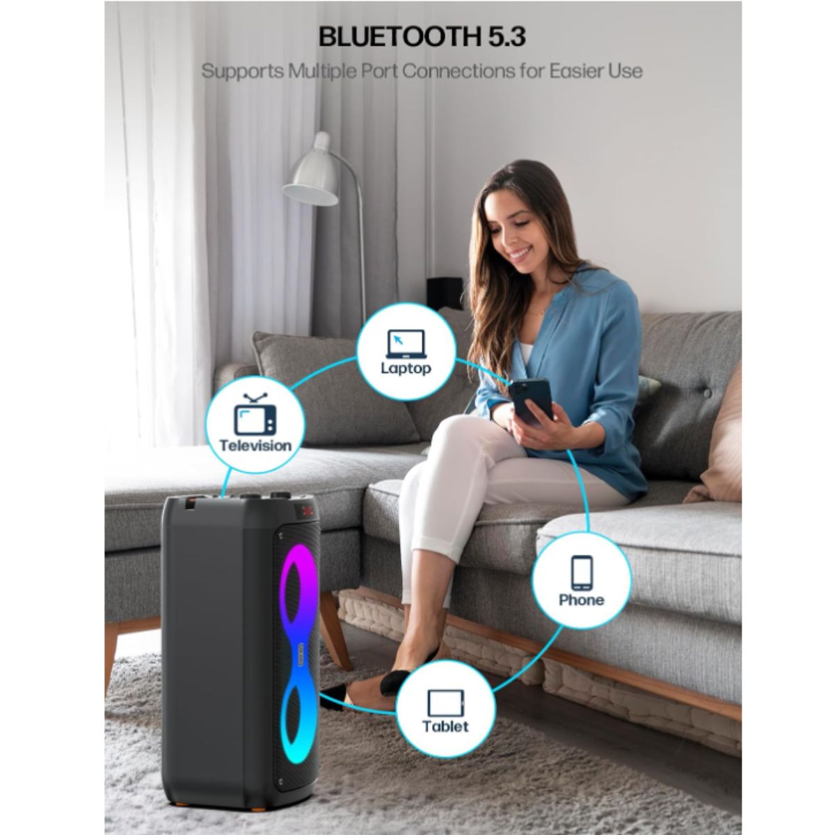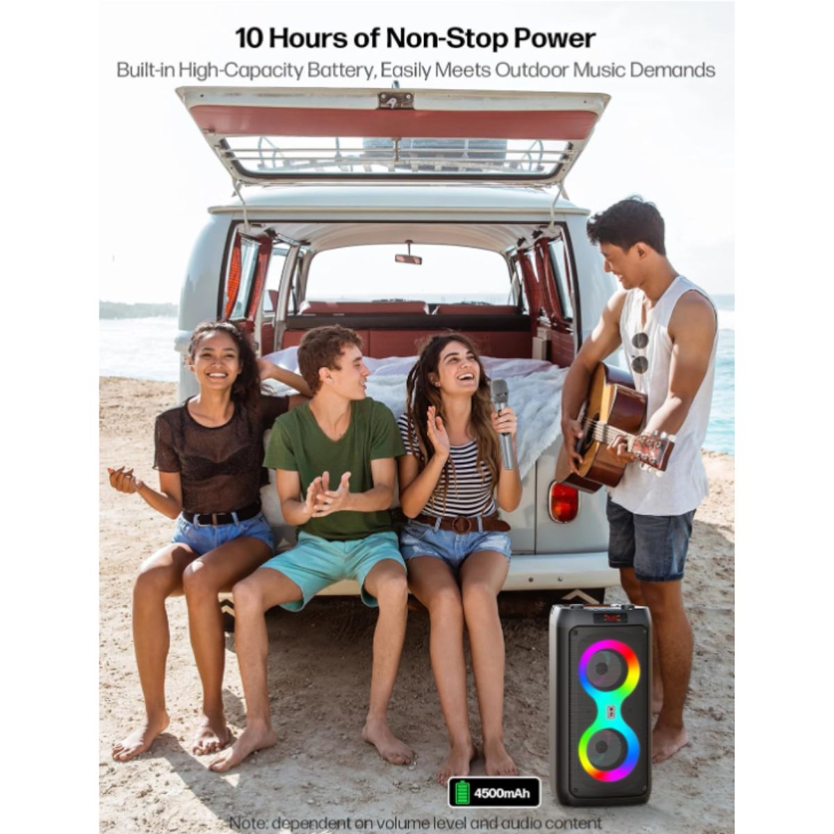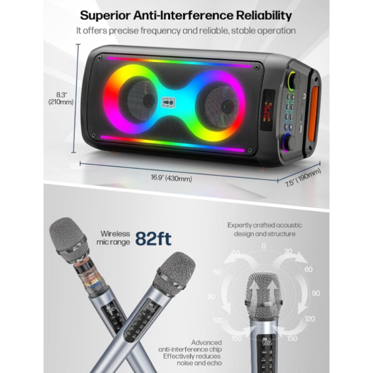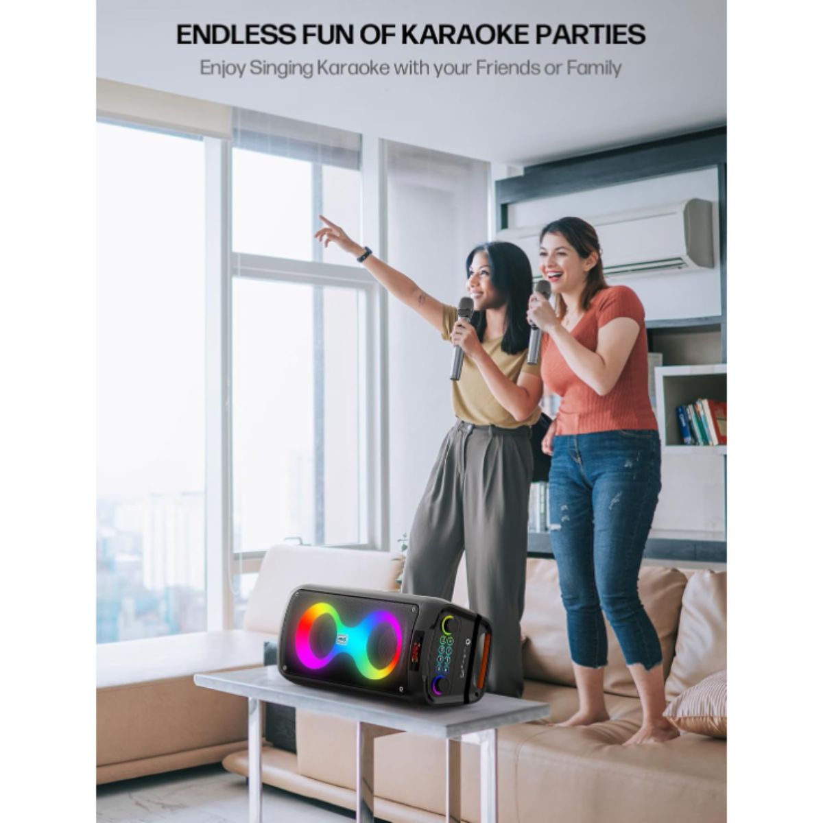 The karaoke machine by JAPOUCA offers powerful 60W sound and 2 wireless microphones for fun parties. Perfect for home and outdoor use.