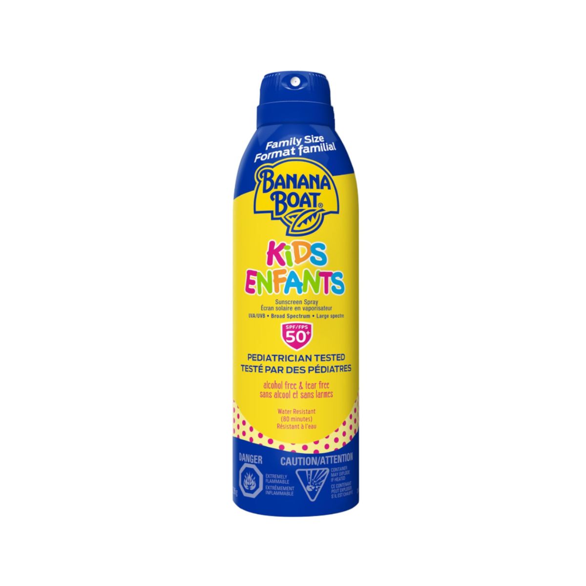 Kids sport sunscreen spray by Banana Boat offers SPF 50+ protection that is gentle on sensitive skin. Ideal for outdoor family fun with reliable water resistance.