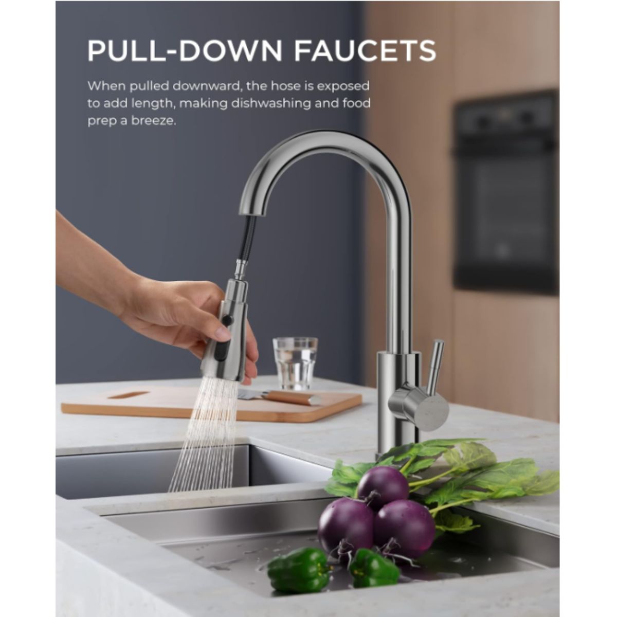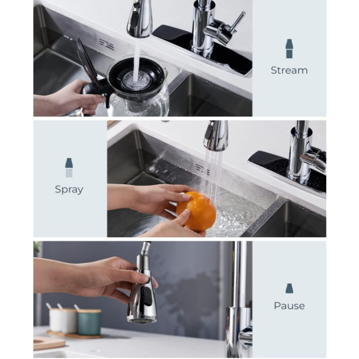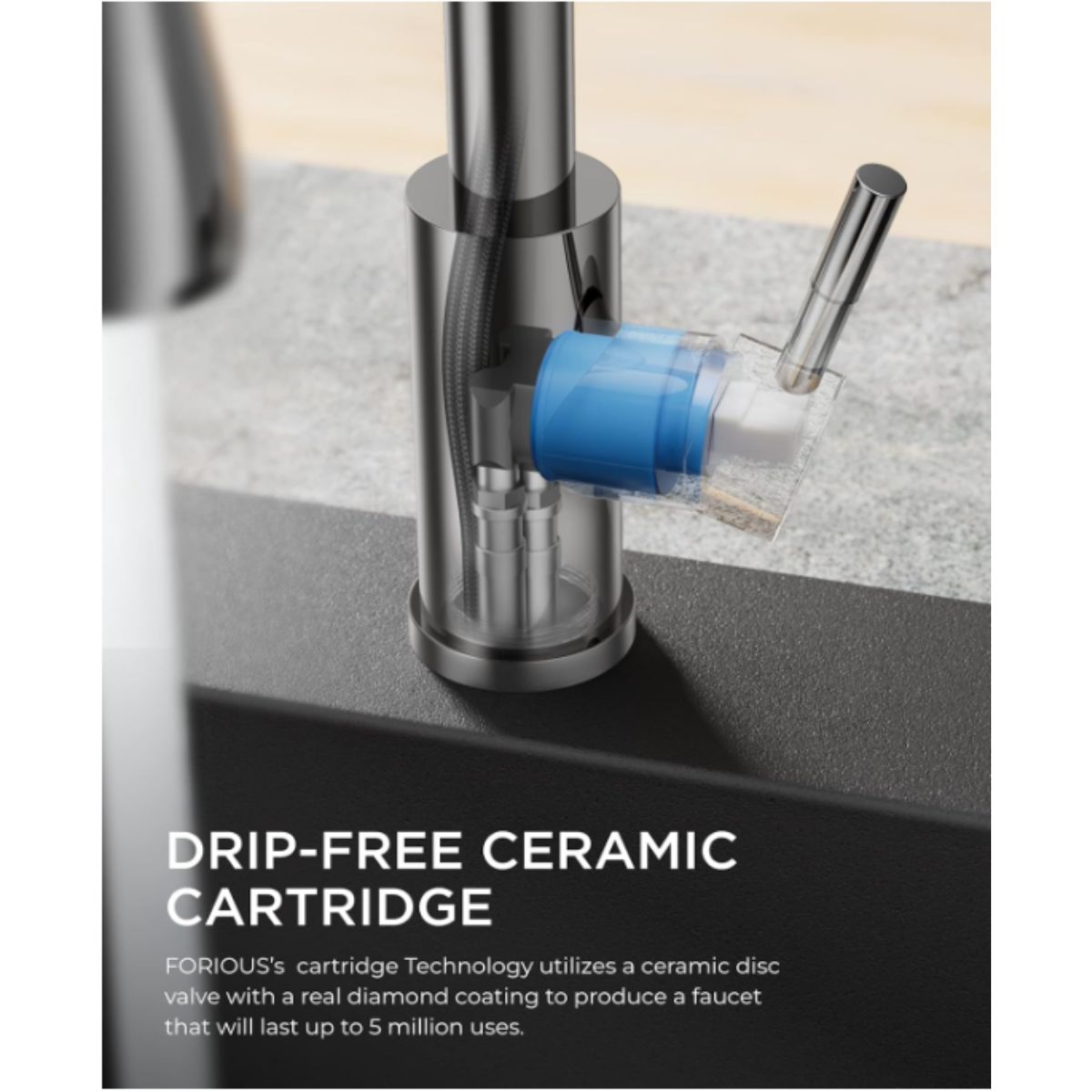 The kitchen faucet with pull down sprayer by FORIOUS brings versatile functionality and durable stainless steel quality. Perfect for efficient kitchen use.