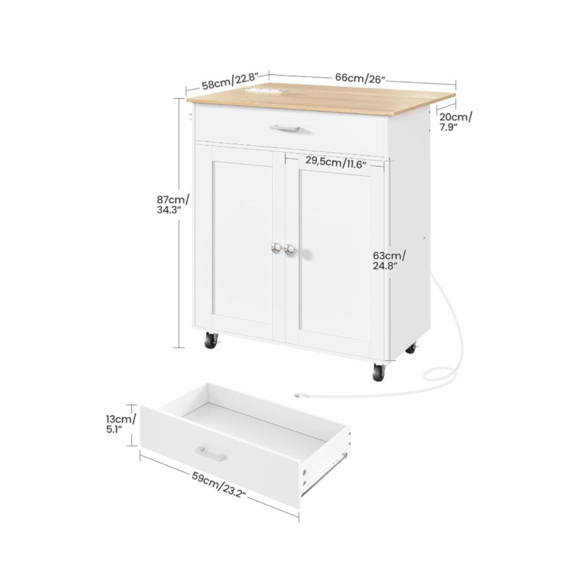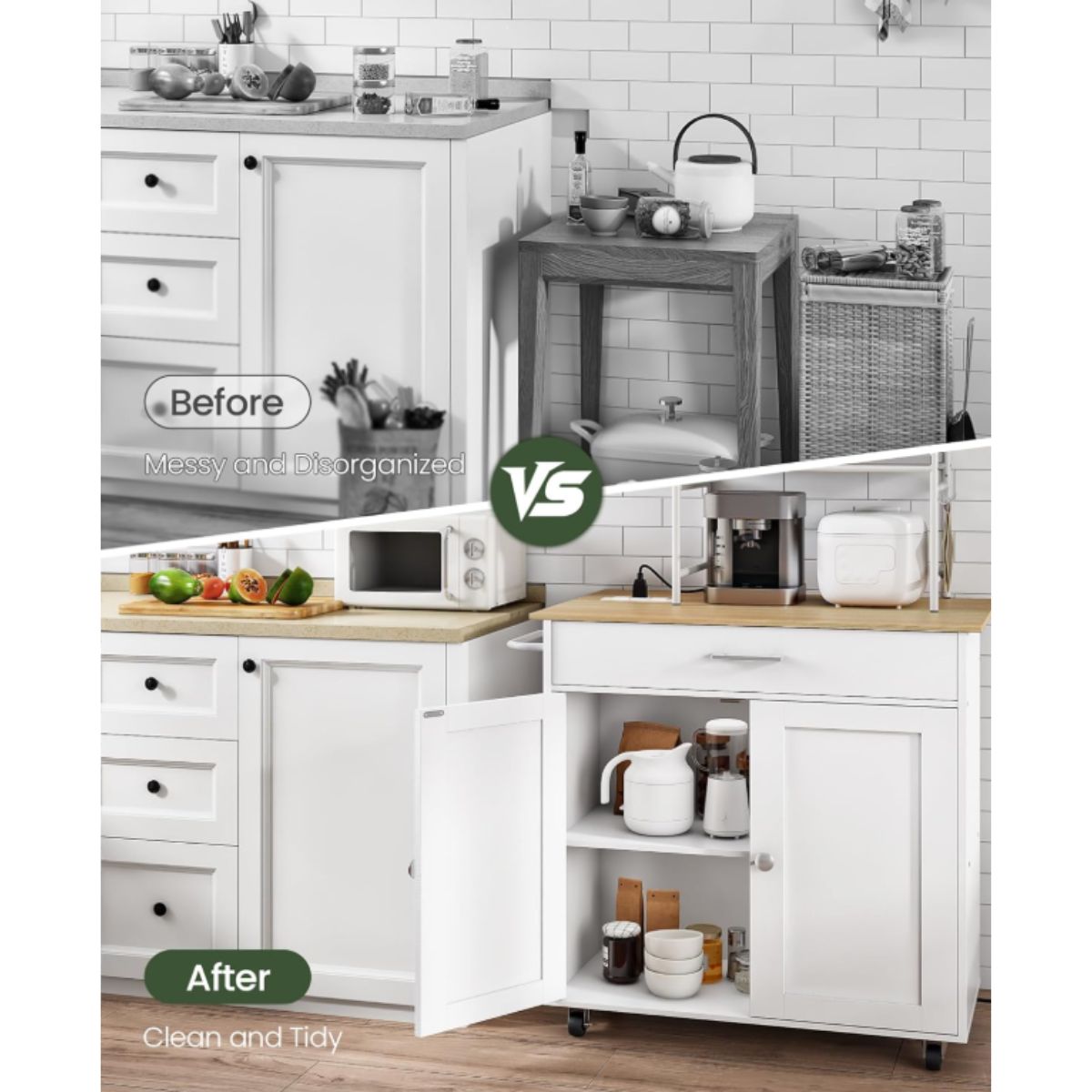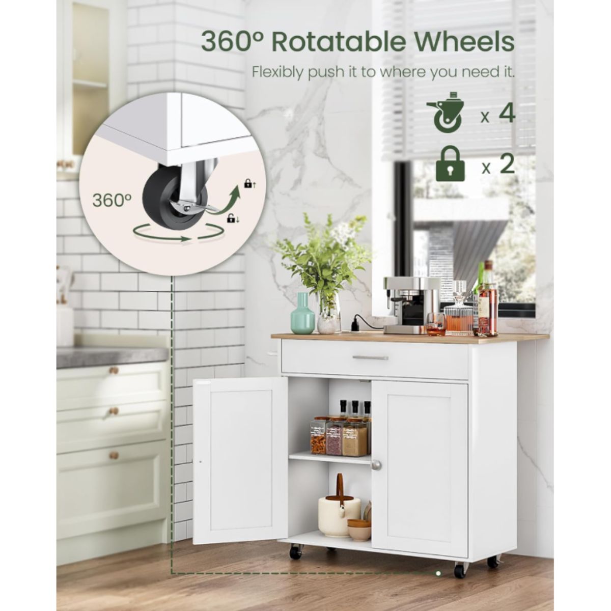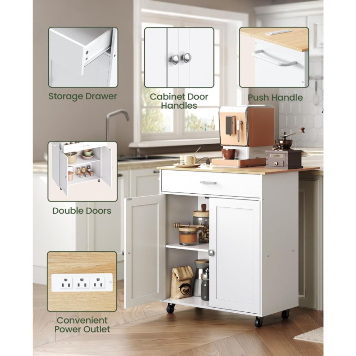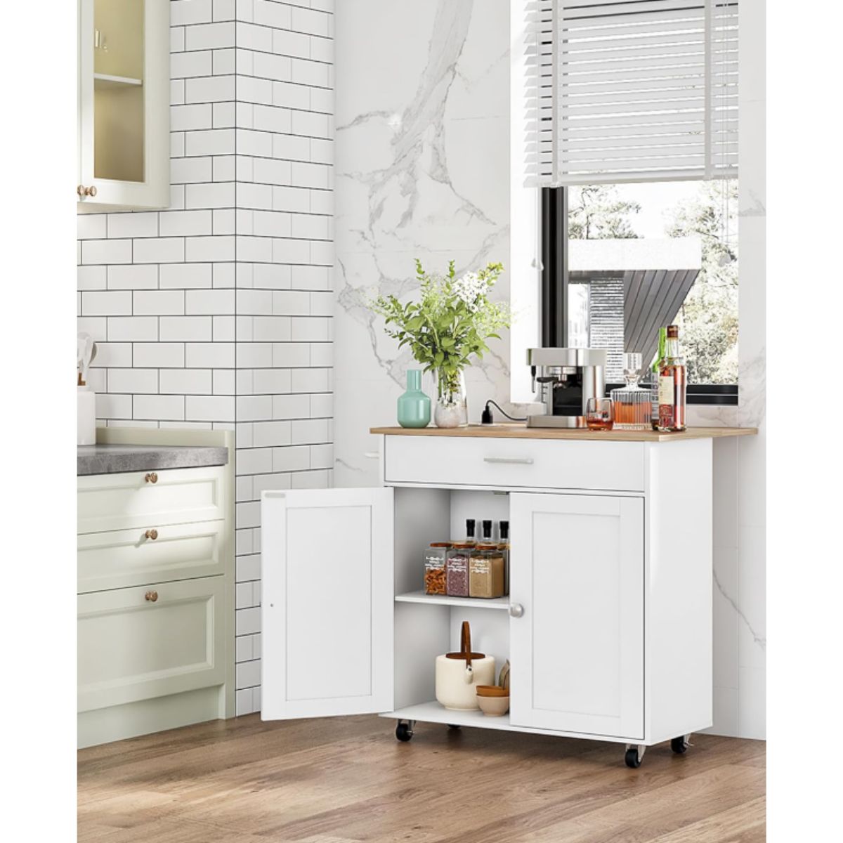 Kitchen Island Cart – CHOEZON White Natural