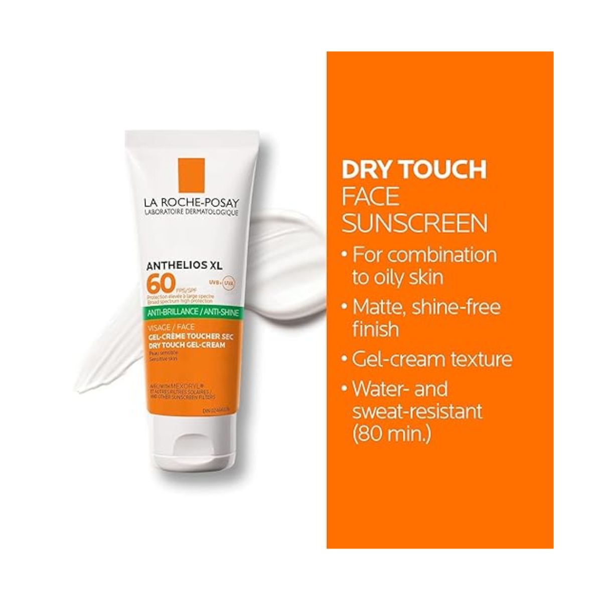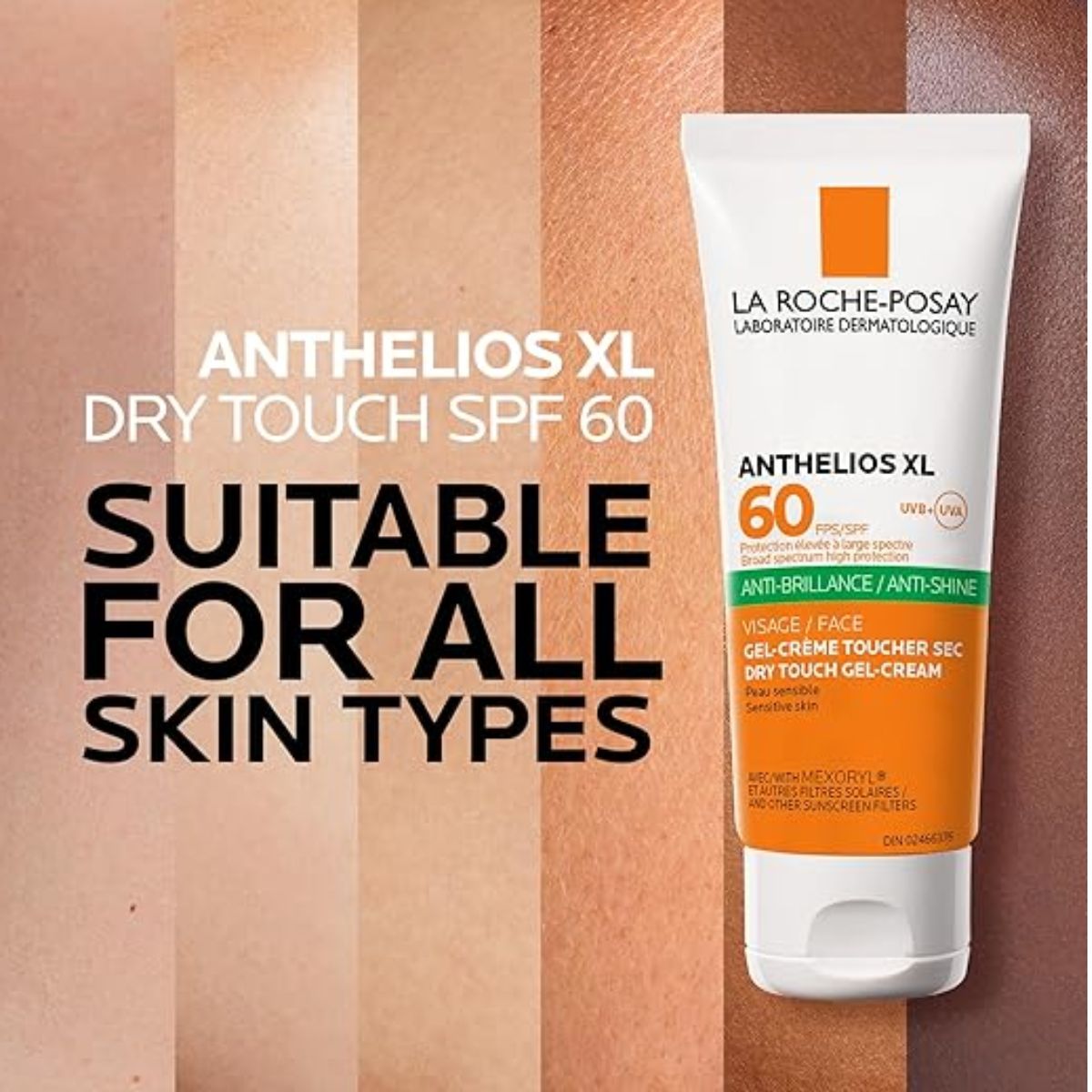La Roche-Posay Anti-Shine Mattifying Face Sunscreen, Anthelios Dry Touch Anti-Shine Sunscreen Broad Spectrum SPF 60 with Silica, Vitamin E & Perlite, Oil Free, Non Greasy, Oxybenzone Free, Paraben Free, Travel Size, Dermatologist Recommended, 50ml