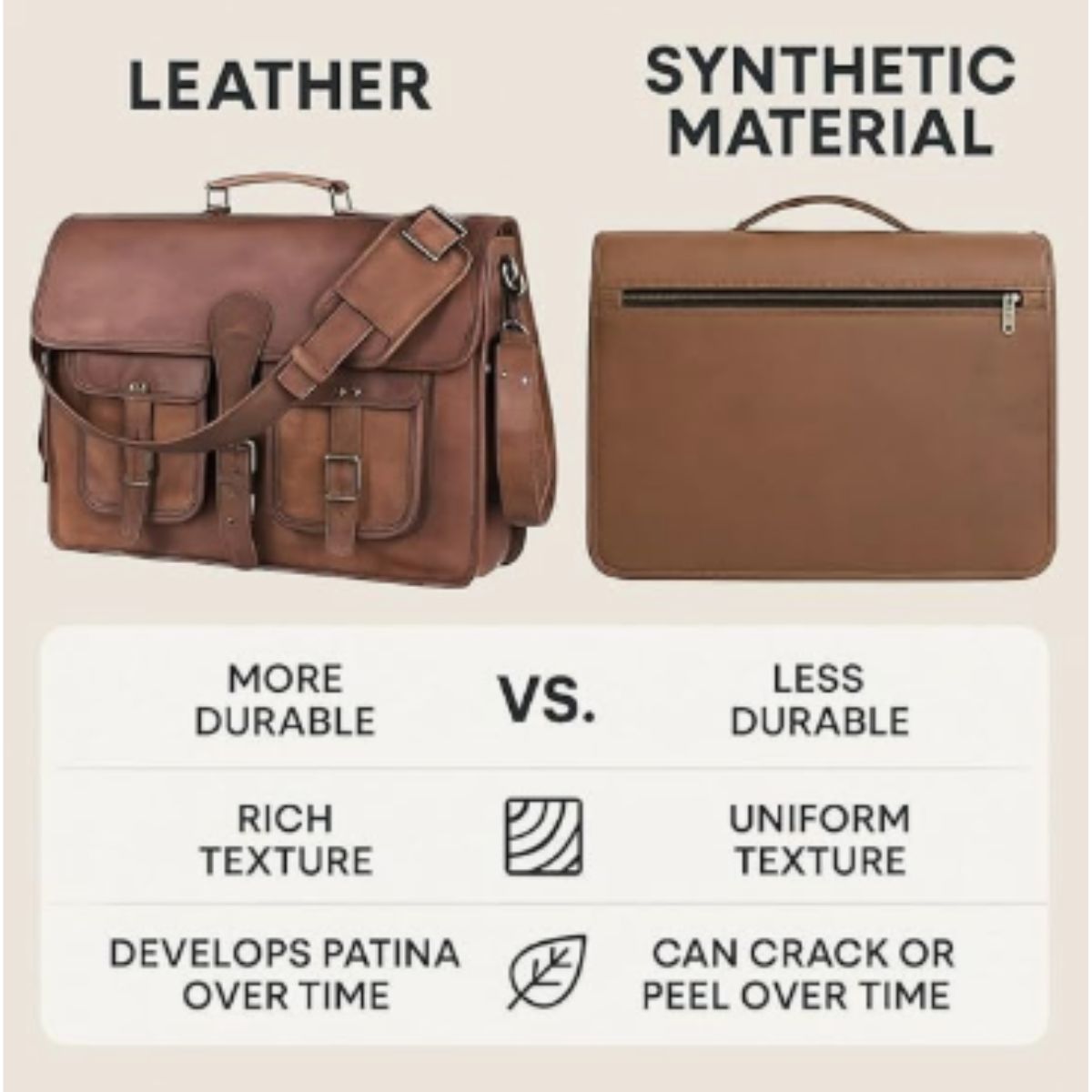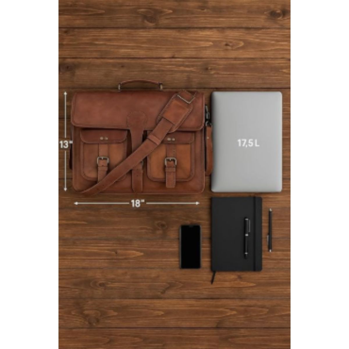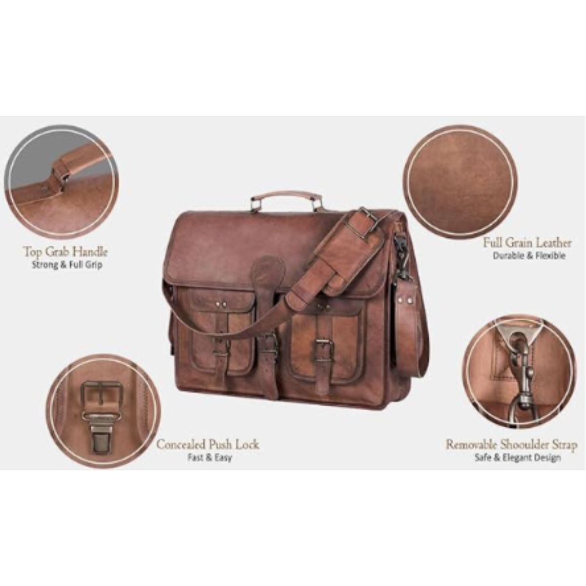 This leather briefcase by Komal’s Passion Leather offers handmade quality and fits laptops up to 17.5 inches. Perfect for men and women seeking style and practicality.