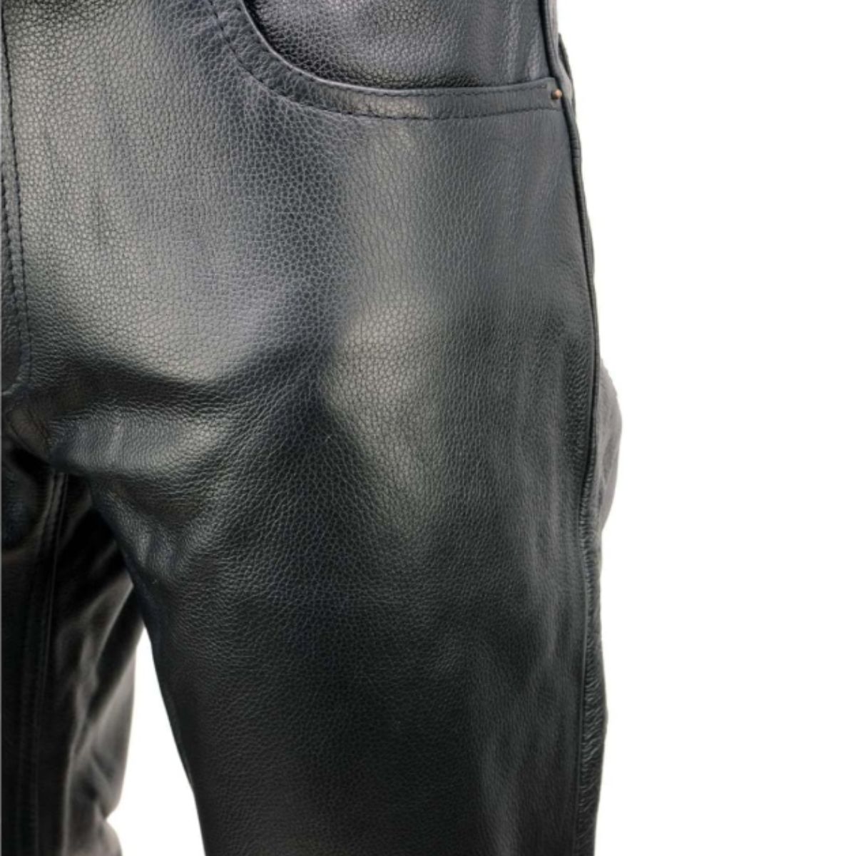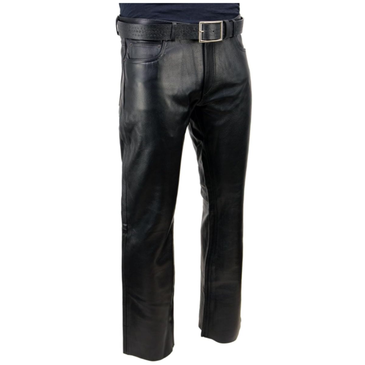 Leather motorcycle pants by Milwaukee Leather offer premium protection and durability. Perfect for cold weather riding with a comfortable satin lining.