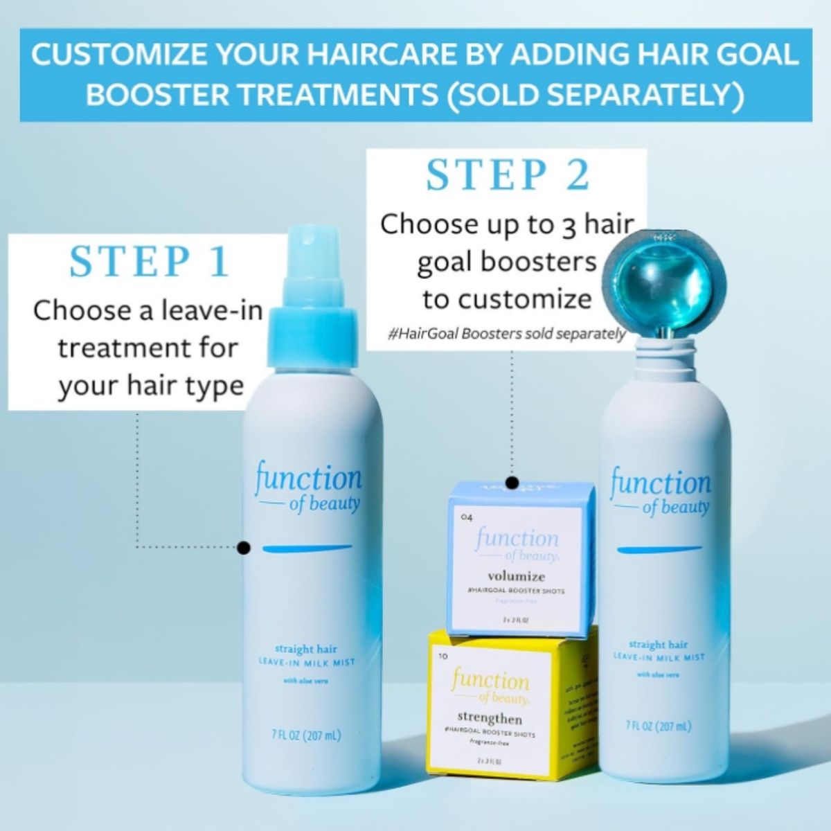 Leave-in milk mist from Function hydrates and softens straight hair with aloe vera. Enjoy lightweight shine and nourishment every day.