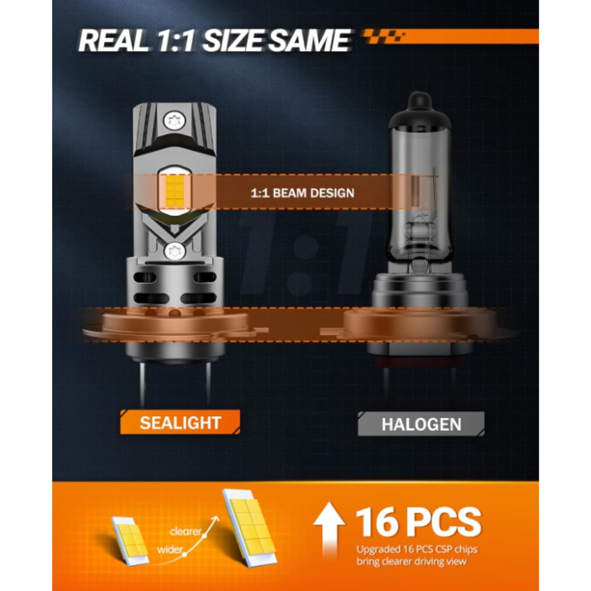 Led headlight bulbs by SEALIGHT provide 32000 lumens of bright cool white light for safer night driving. Easy plug-and-play installation with halogen replacement size.