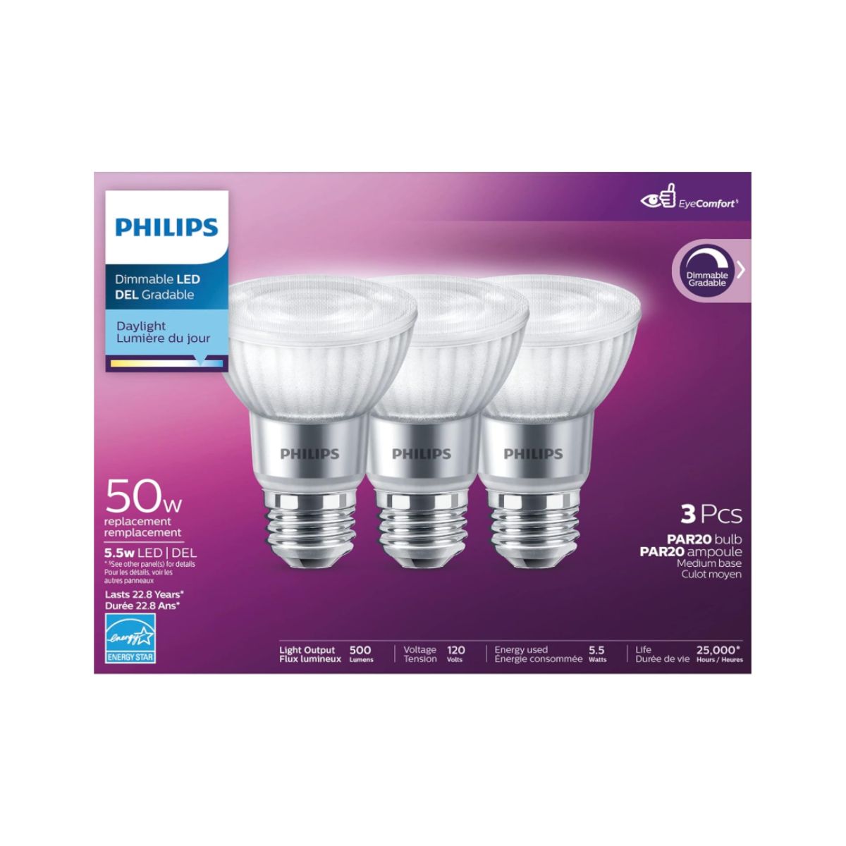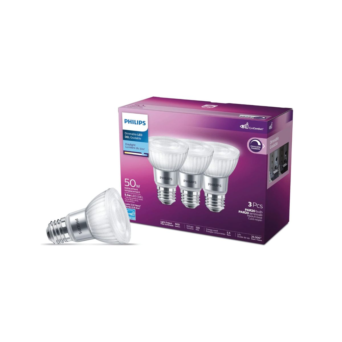 Led par20 bulbs by Philips offer energy-saving daylight (5000K) illumination perfect for recessed and track lighting. Save up to 80% energy costs.
