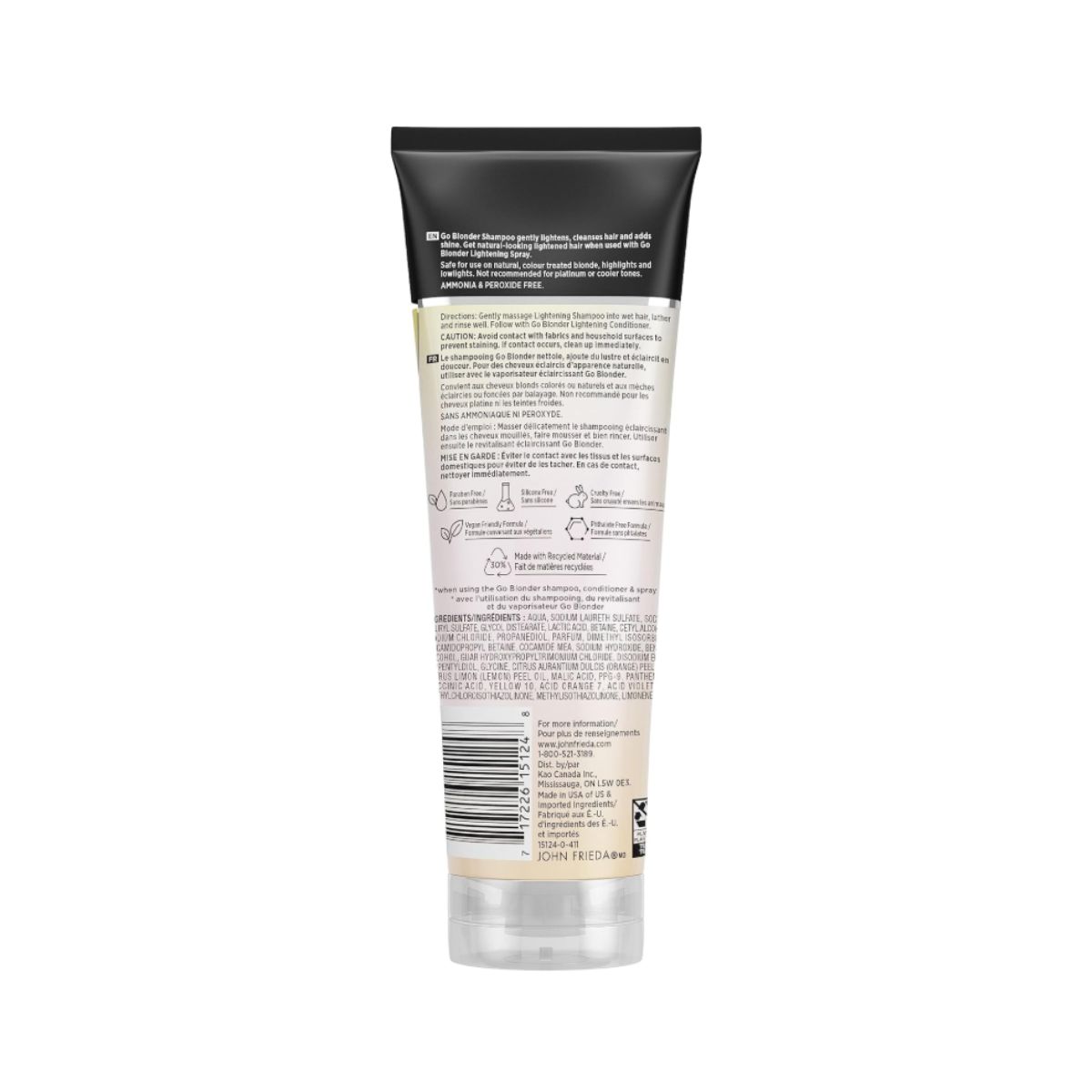 Lightening shampoo by JOHN FRIEDA® helps brighten blonde hair with a gentle, effective formula. Ideal for natural or colour-treated blonde hair.
