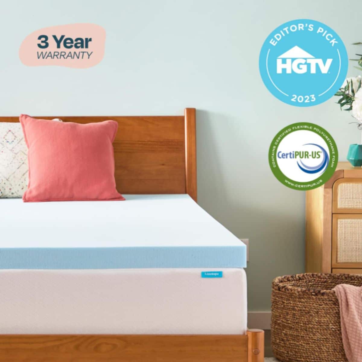 Linenspa 3 Inch Memory Foam Mattress Topper, Gel Infused King Mattress Topper, CertiPUR-US Certified