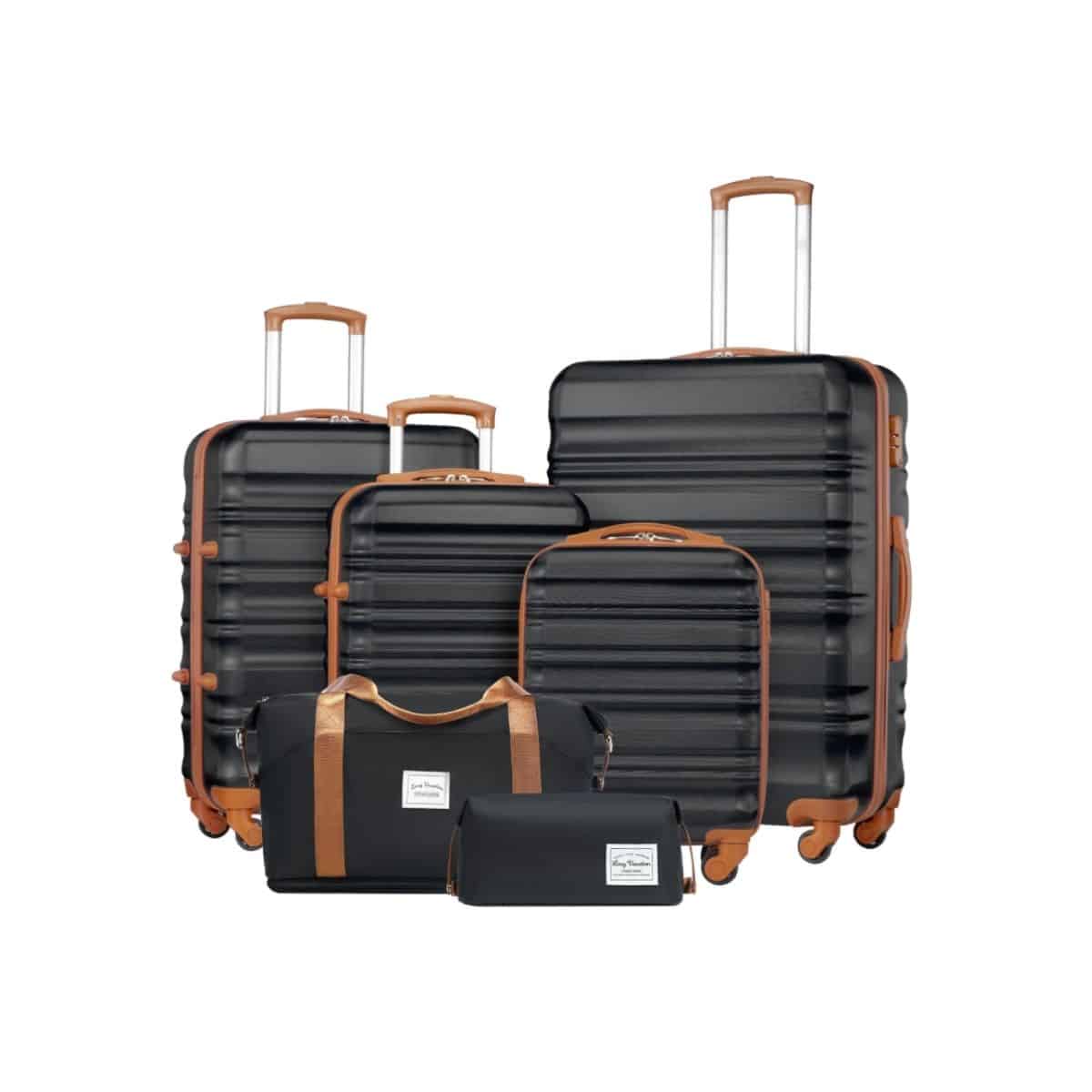 LONG VACATION 6 Piece ABS+PC Hardshell Luggage Set with Spinner Wheels, Lightweight suitcase set with TSA Lock & YKK Zipper