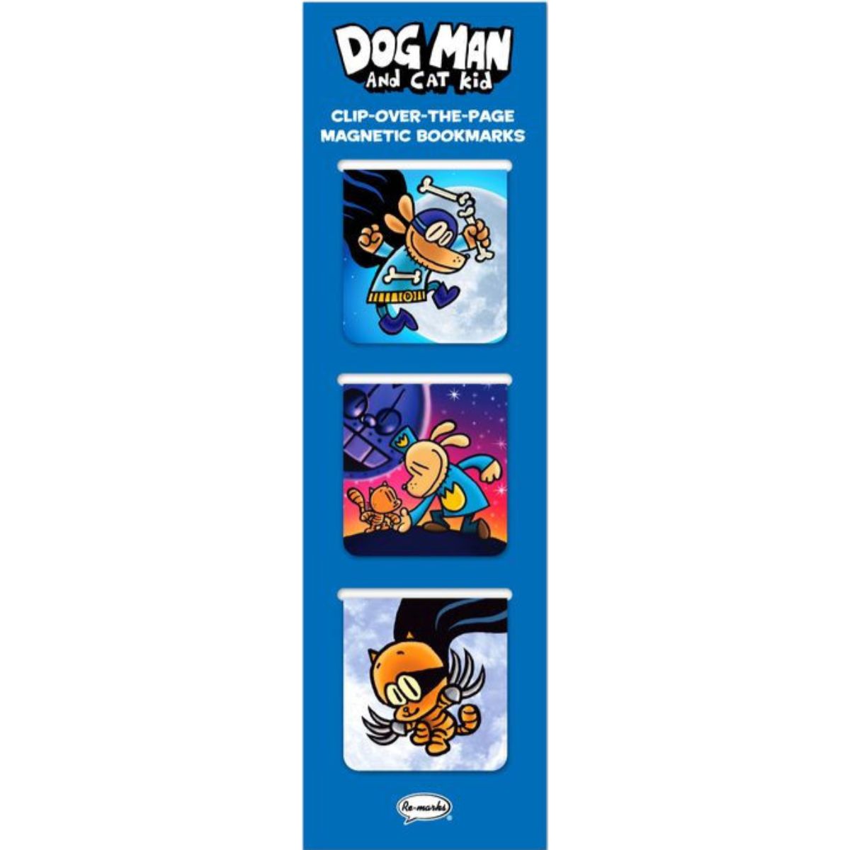 Magnetic bookmarks by Re-Marks make marking your place easy and fun. Durable and practical, perfect for everyday use by fans of Dog Man and Cat Kid.