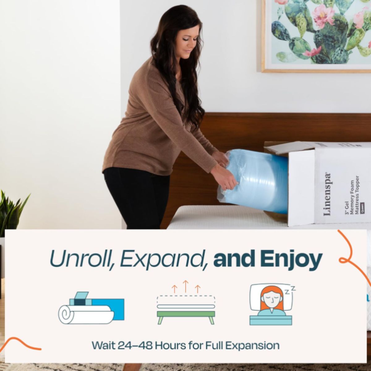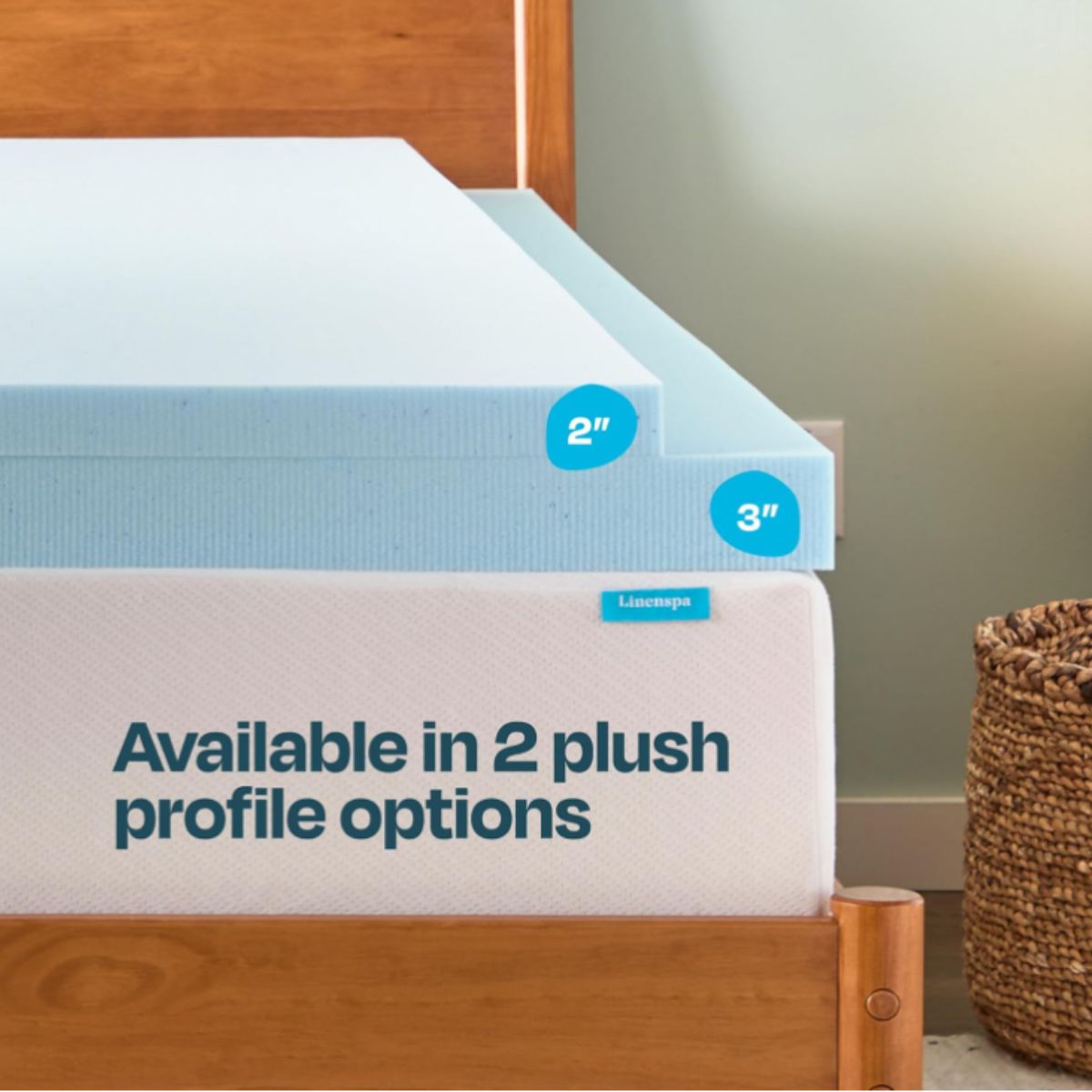Memory foam mattress topper by Linenspa adds plush comfort with gel infusion to regulate temperature. Perfect for upgrading your sleep surface.
