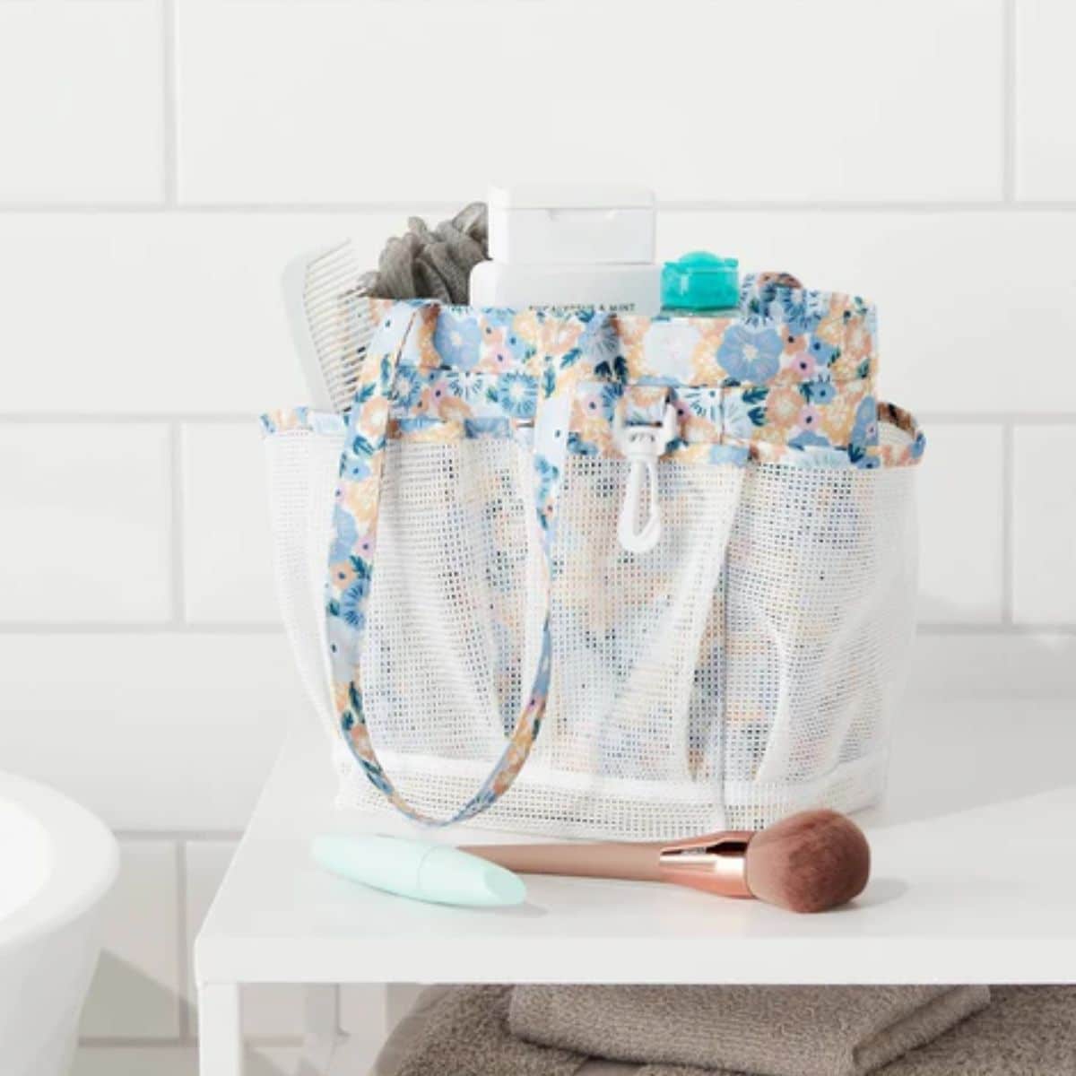 Keep your bath items organized with the Mesh Shower Caddy in Blue. Featuring spacious compartments and quick-dry mesh, it’s a must-have for any bathroom.