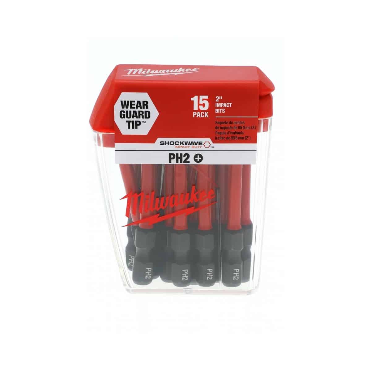 Milwaukee 48-32-5004 PH2 2″ SHOCKWAVE Impact Duty Philiips Bits (15 Pack)