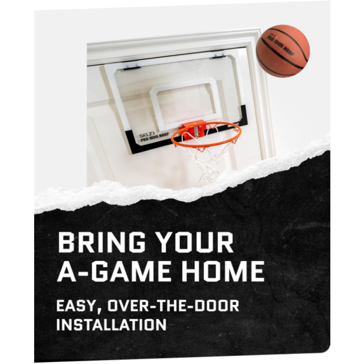 The mini basketball hoop by Sklz delivers authentic basketball action with a shatterproof backboard and pro-grade rim. Perfect for practice and fun.
