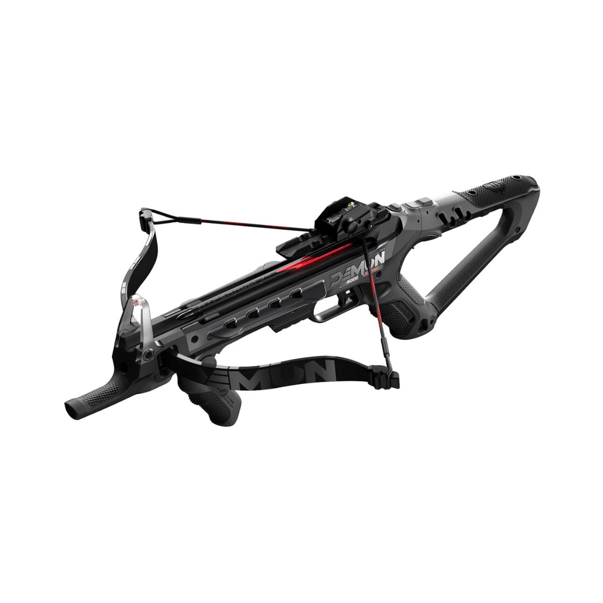 Mini crossbow pistol by Barnett offers compact design with flip down foregrip for stable control and fiber optic sights for precise aiming. Ideal for enthusiasts.