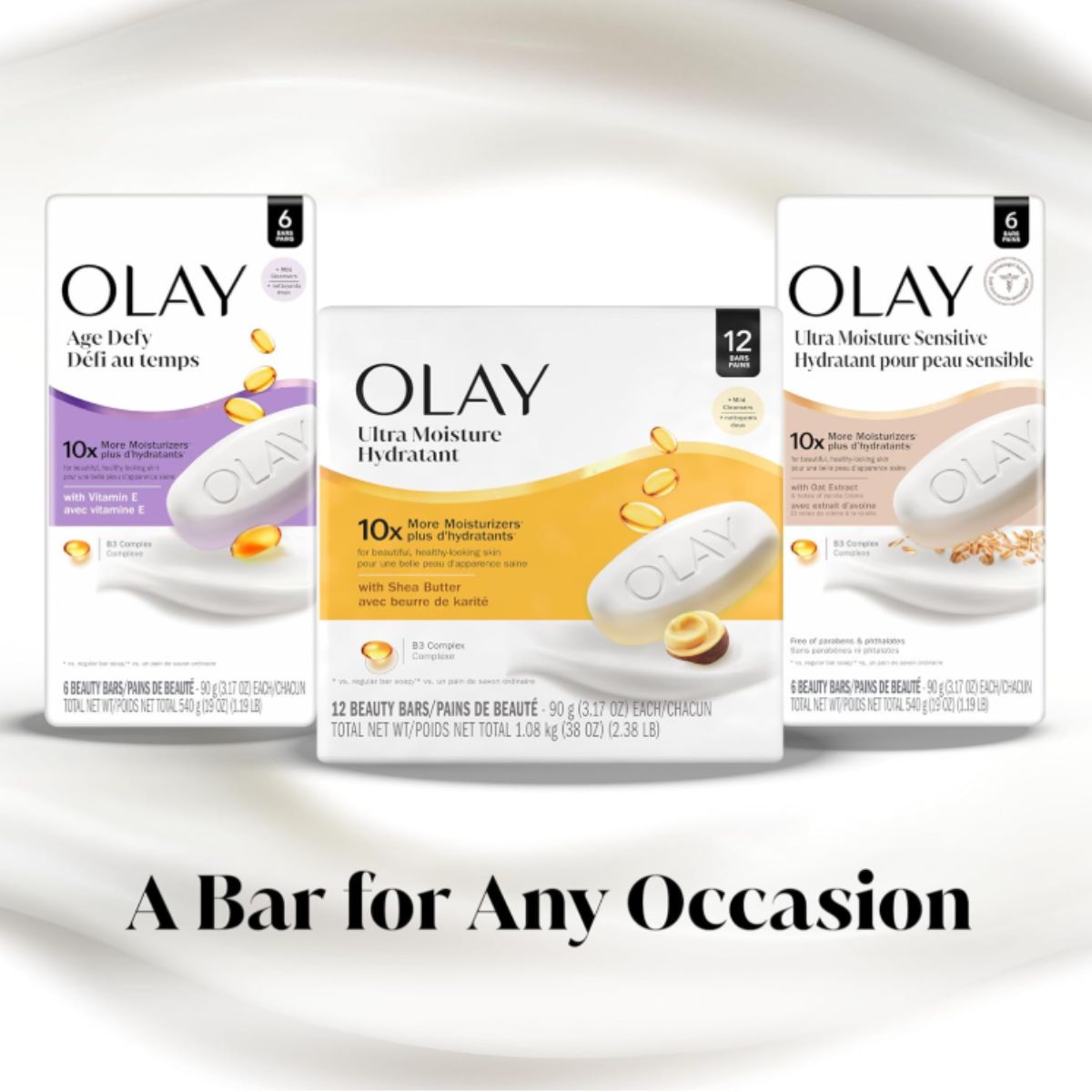 The moisture beauty bar from Olay delivers soft, hydrated skin with shea butter and vitamin B3. Perfect for daily gentle cleansing for all skin types.