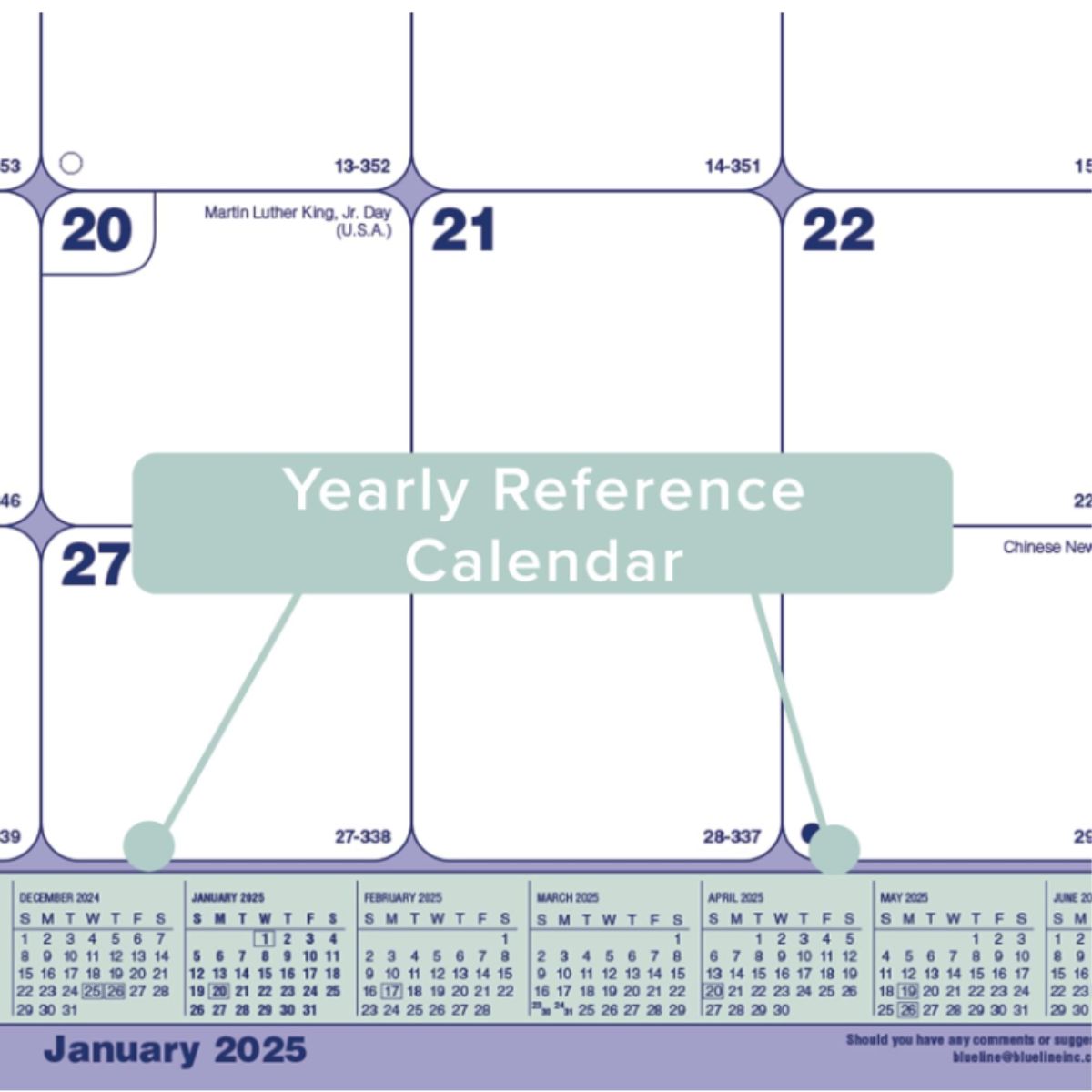 The monthly desk pad calendar by Blueline covers 12 months, ideal for organized scheduling. Its durable design fits any desk perfectly for easy planning.