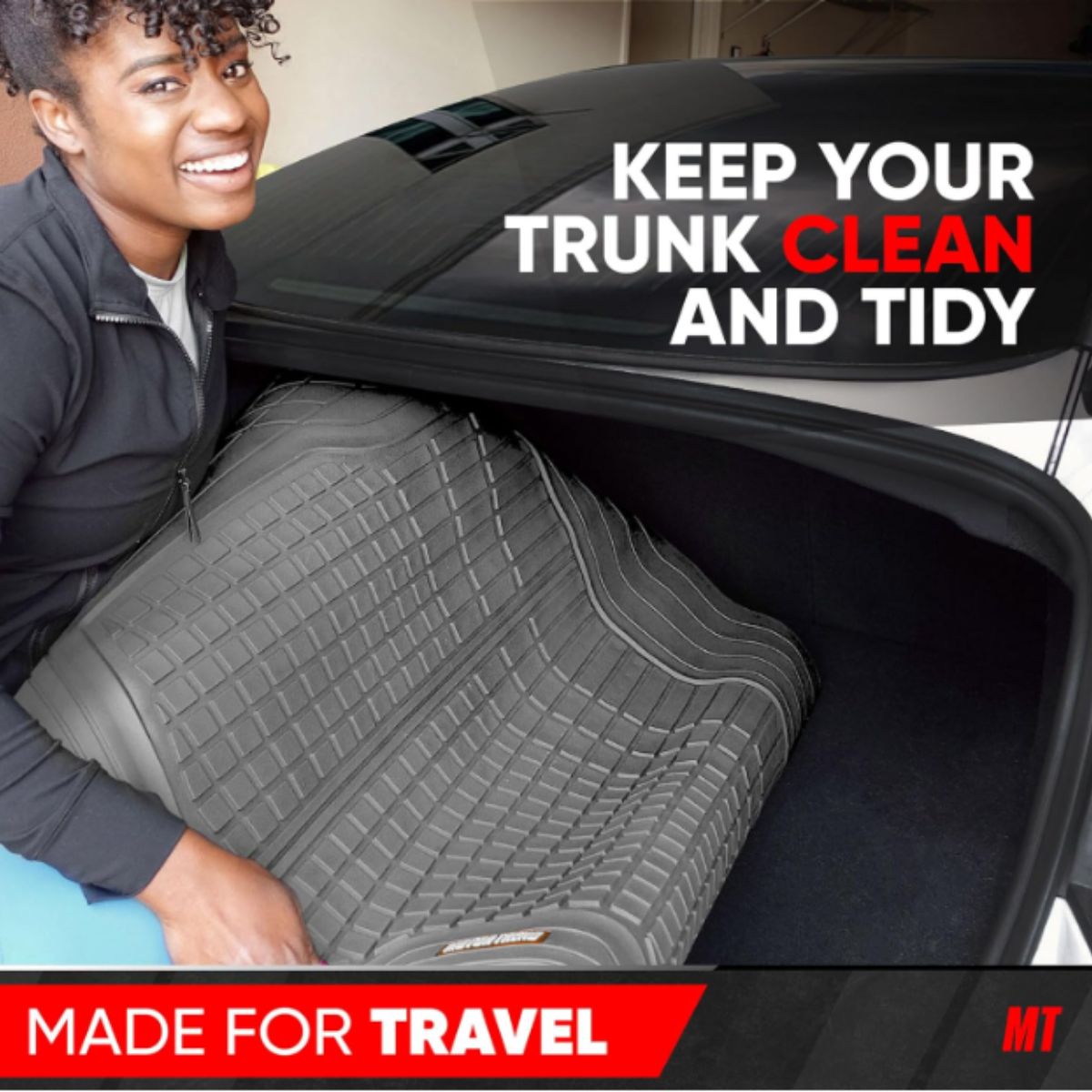 The Motor Trend FlexTough Rear Cargo Mat offers durable, flexible protection for your SUV’s trunk. Its universal, trimmable design ensures a perfect fit with anti-slip backing for practical use.