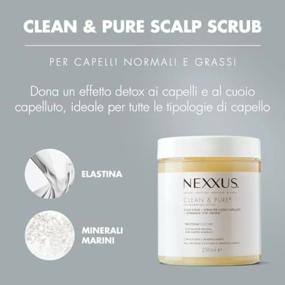 Nexxus, Clean & Pure Exfoliating Scrub, Hair Scrub, Removes Impurities, Product Residue, Sebum & Oils, Elastin & Marine Mineral Based Formula, Leather Purifying Scrub