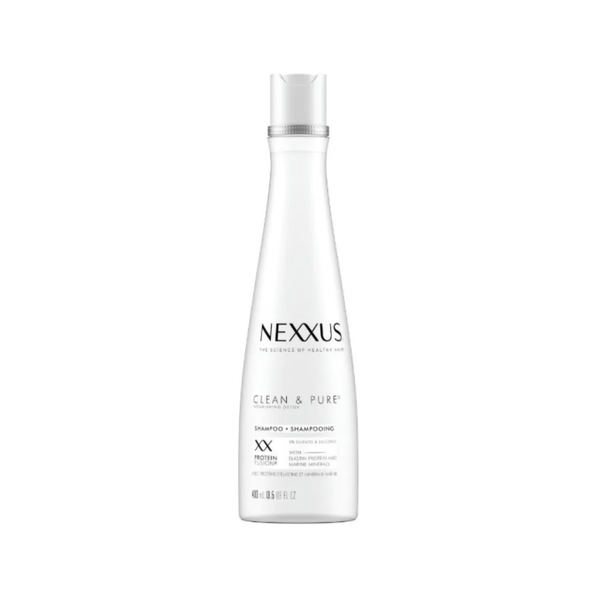 Nexxus Clean & Pure Shampoo nourishes all hair types Moisture silicone free, paraben free, dye free 400 ml provides dependable performance in everyday use.