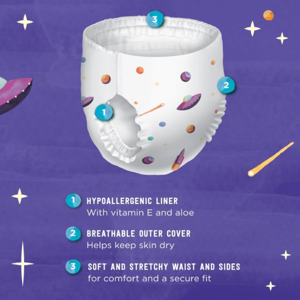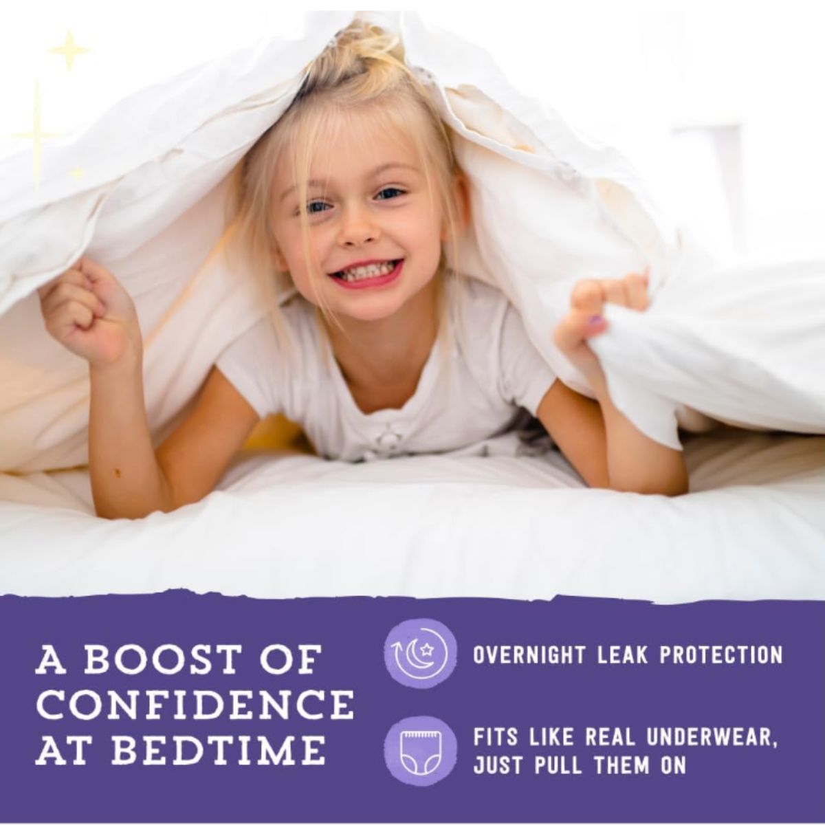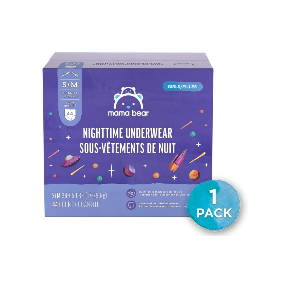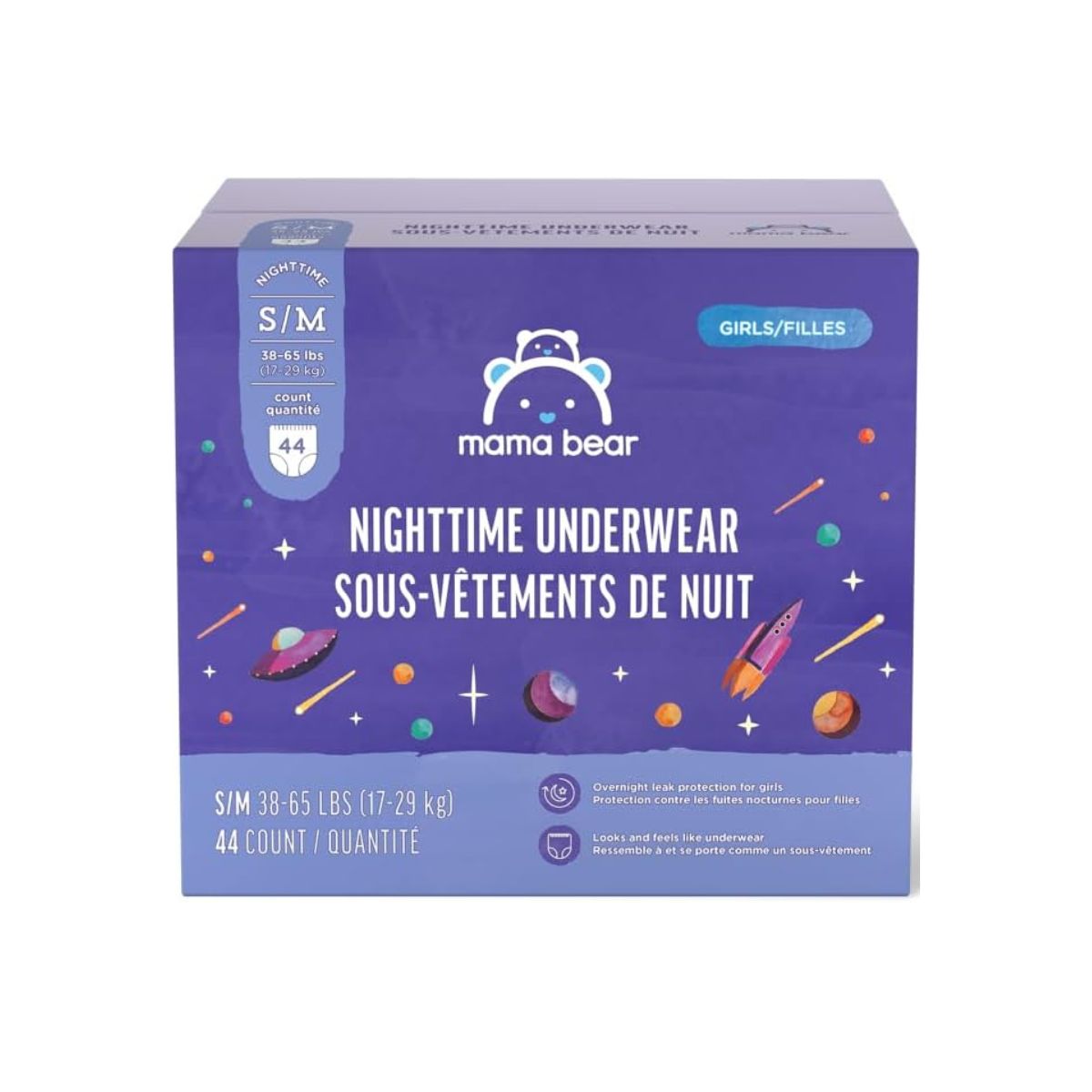Nighttime underwear by Mama Bear offers cozy, hypoallergenic protection for girls. Ideal for bedwetting with a breathable and soft design.