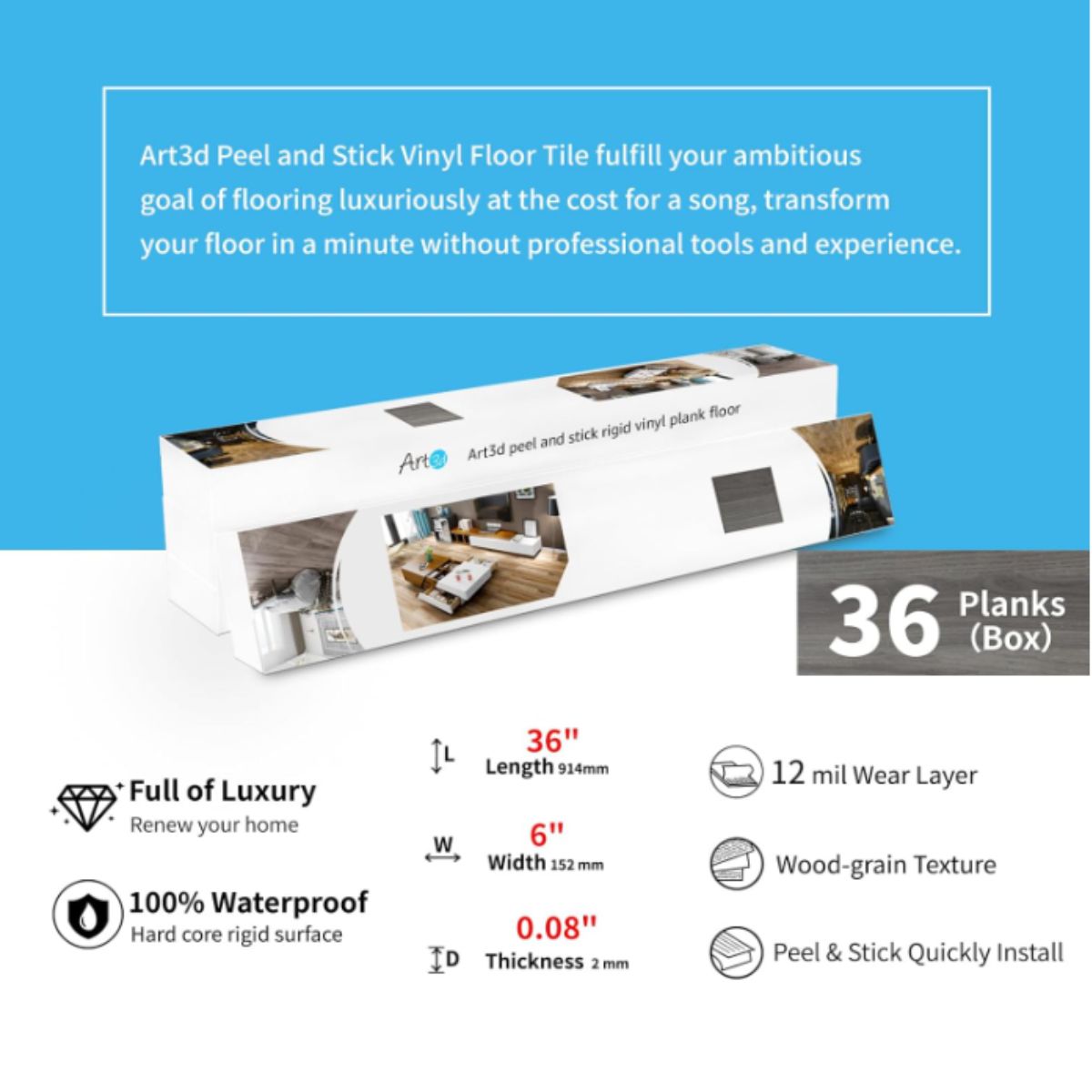 Peel and stick floor tile from Art3d offers an authentic wood look with easy DIY installation. Durable, waterproof, and perfect for quick home upgrades.