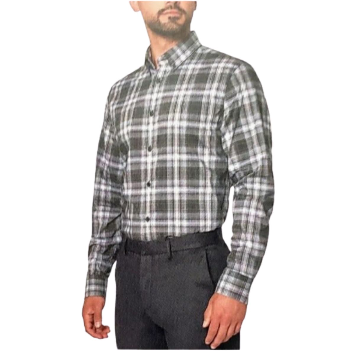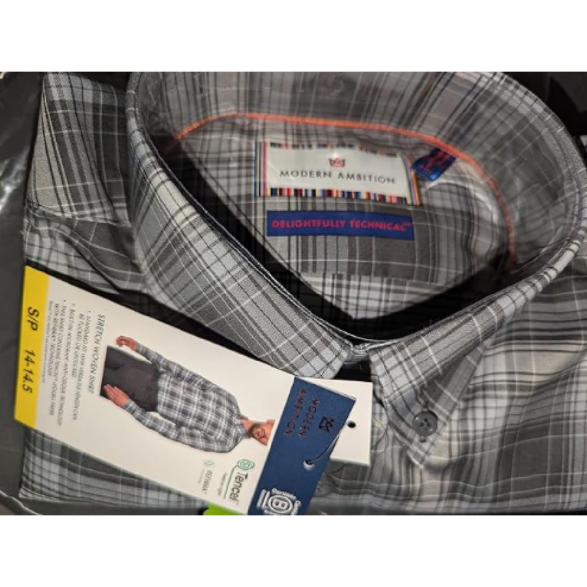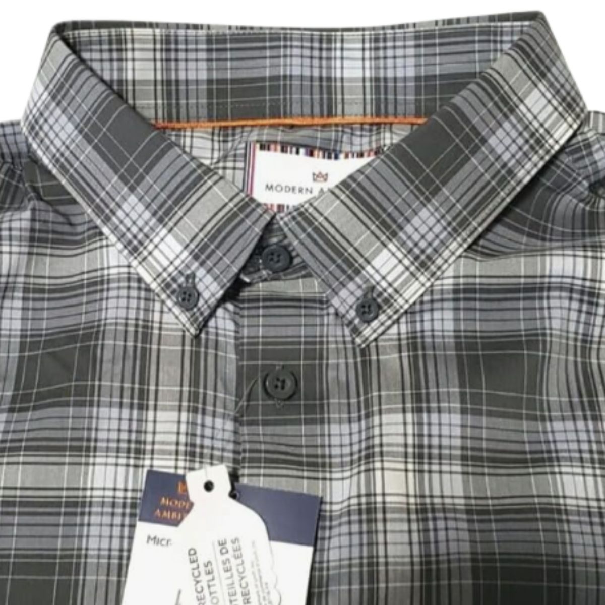 Plaid dress shirt by Modern offers comfortable stretch and a flattering fit. Perfect for professional or casual occasions.