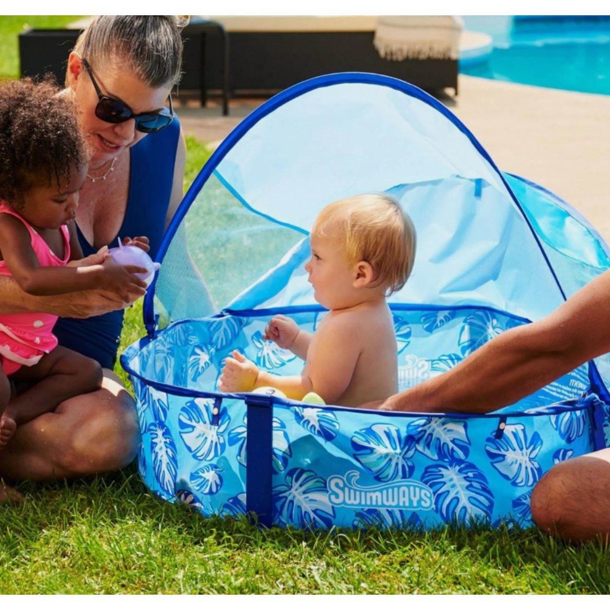 The pop up pool canopy by Swimways offers safe sun protection for babies aged 9-24 months. Foldable and easy to carry, perfect for pool days.