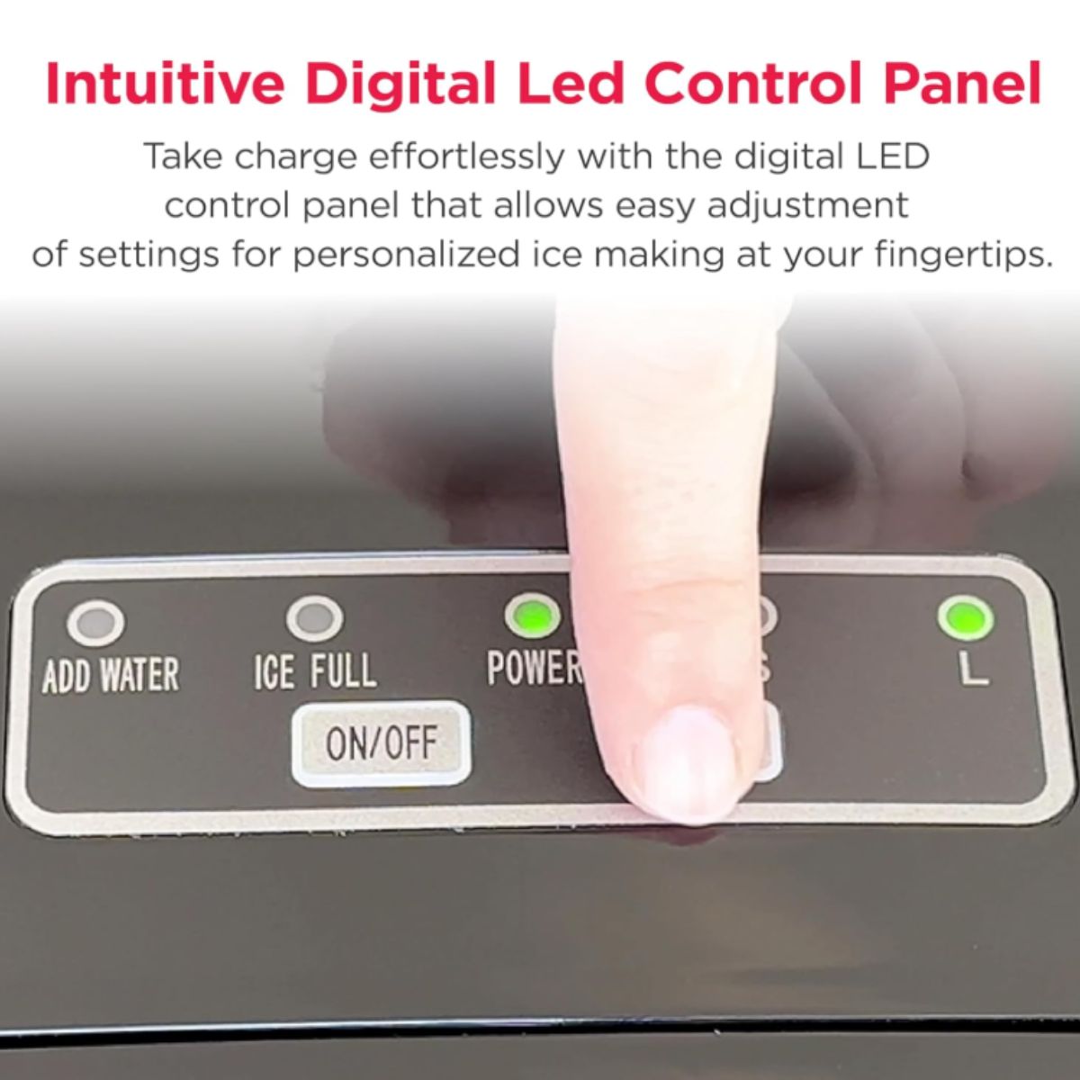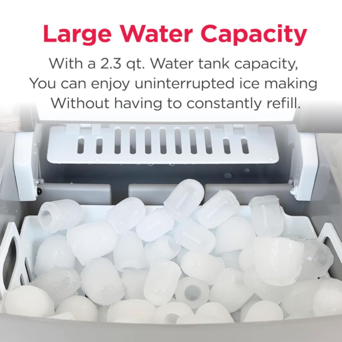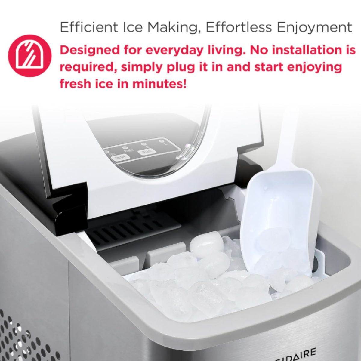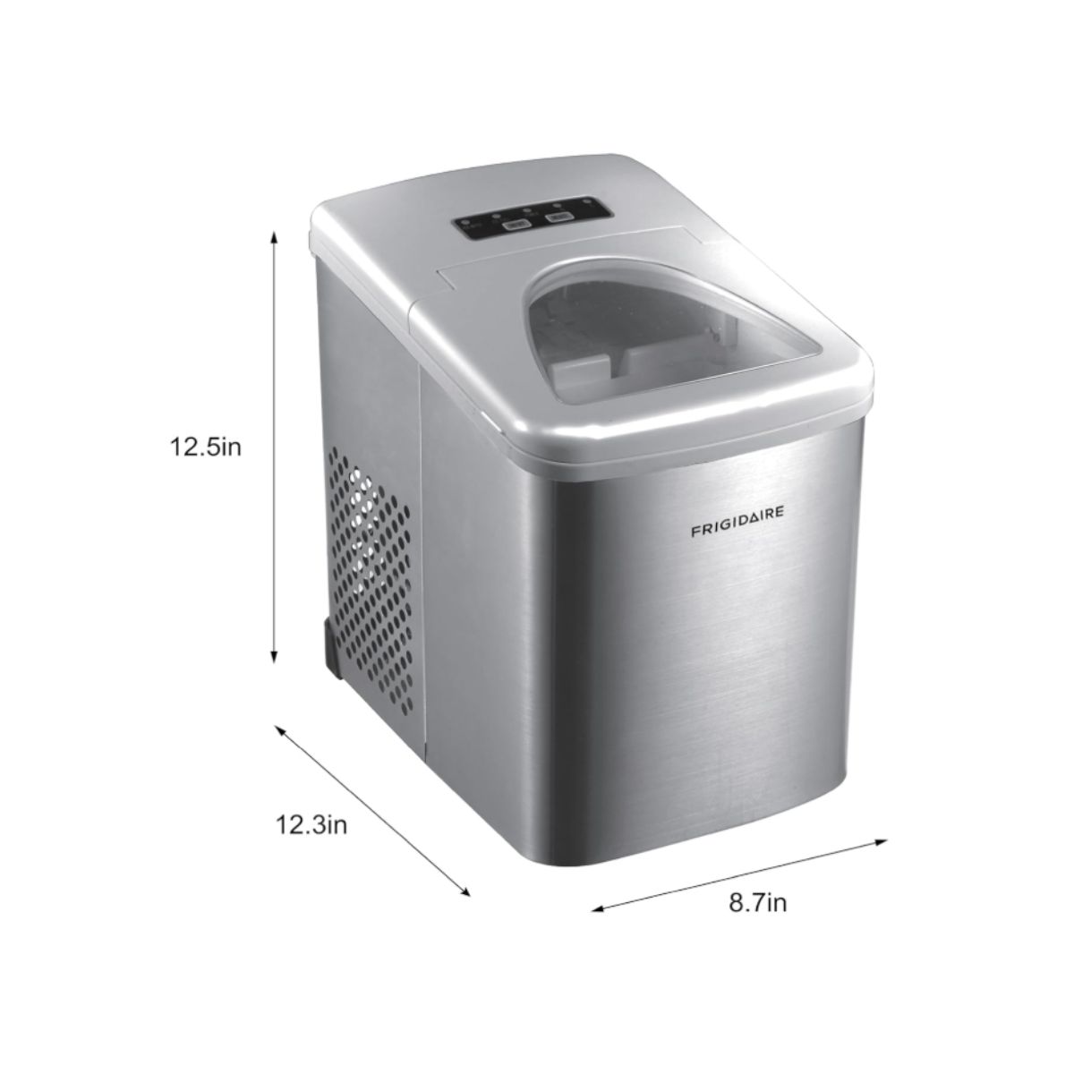 Portable ice maker by Frigidaire offers quick, reliable ice production. Stainless steel design with 26 lbs daily capacity, perfect for any space.